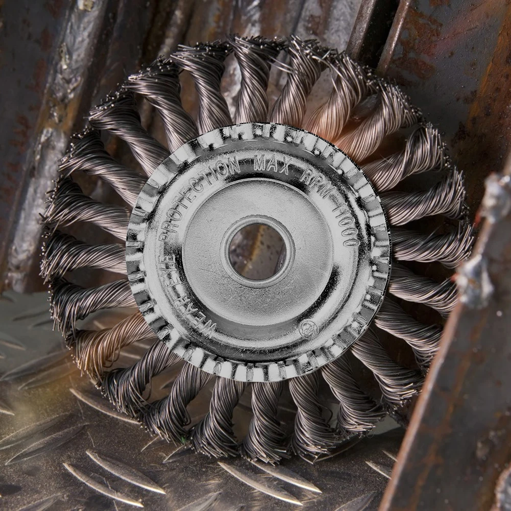 1. Made of high-quality steel wire, durable. 2. This brush is mainly suitable for deburring, dust removal, oxide removal, cleaning and polishing accessories. 3. Coating can improve the quality of metal and stone. 4. Built-in fixing plate ensures consistency and safety. 5. Provide smoothness and flexibility of kink line. Specification: Material: stainless steel Aperture: 16mm/0.63" Diameter: 100mm/3.94" Usage: Used for replacing the head of a lawn mower Note: 1. Due to the different monitor and light effect, the actual color of the item might be slightly different from the color showed on the pictures. Thank you! 2. Please allow 1-3cm measuring deviation due to manual measurement.