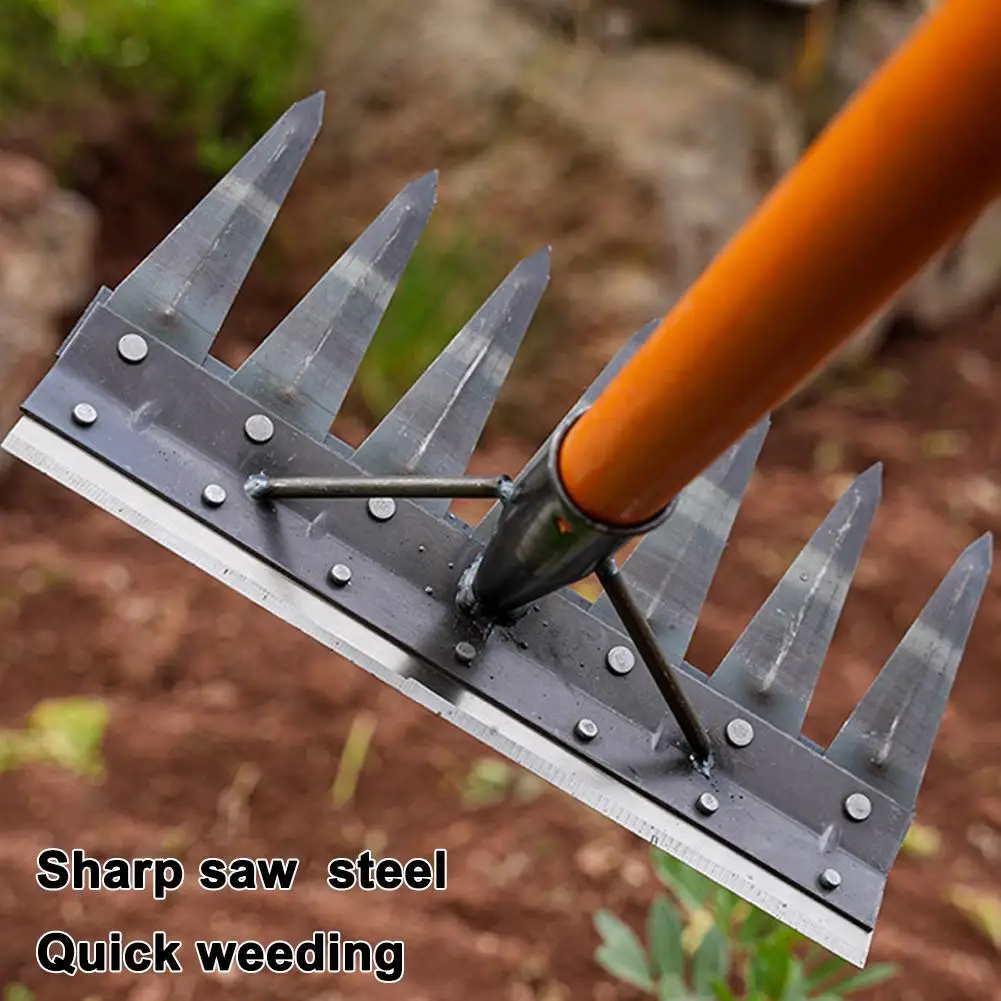 STRONG MATERIAL: Made with high-hardness manganese steel, the rake is designed to resist wear and erosion, ensuring it stays functional and dependable through extended periods of gardening work.