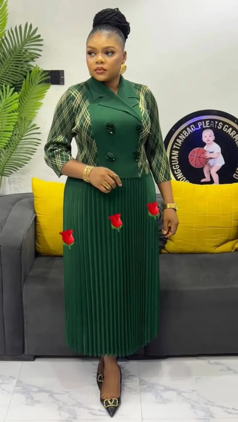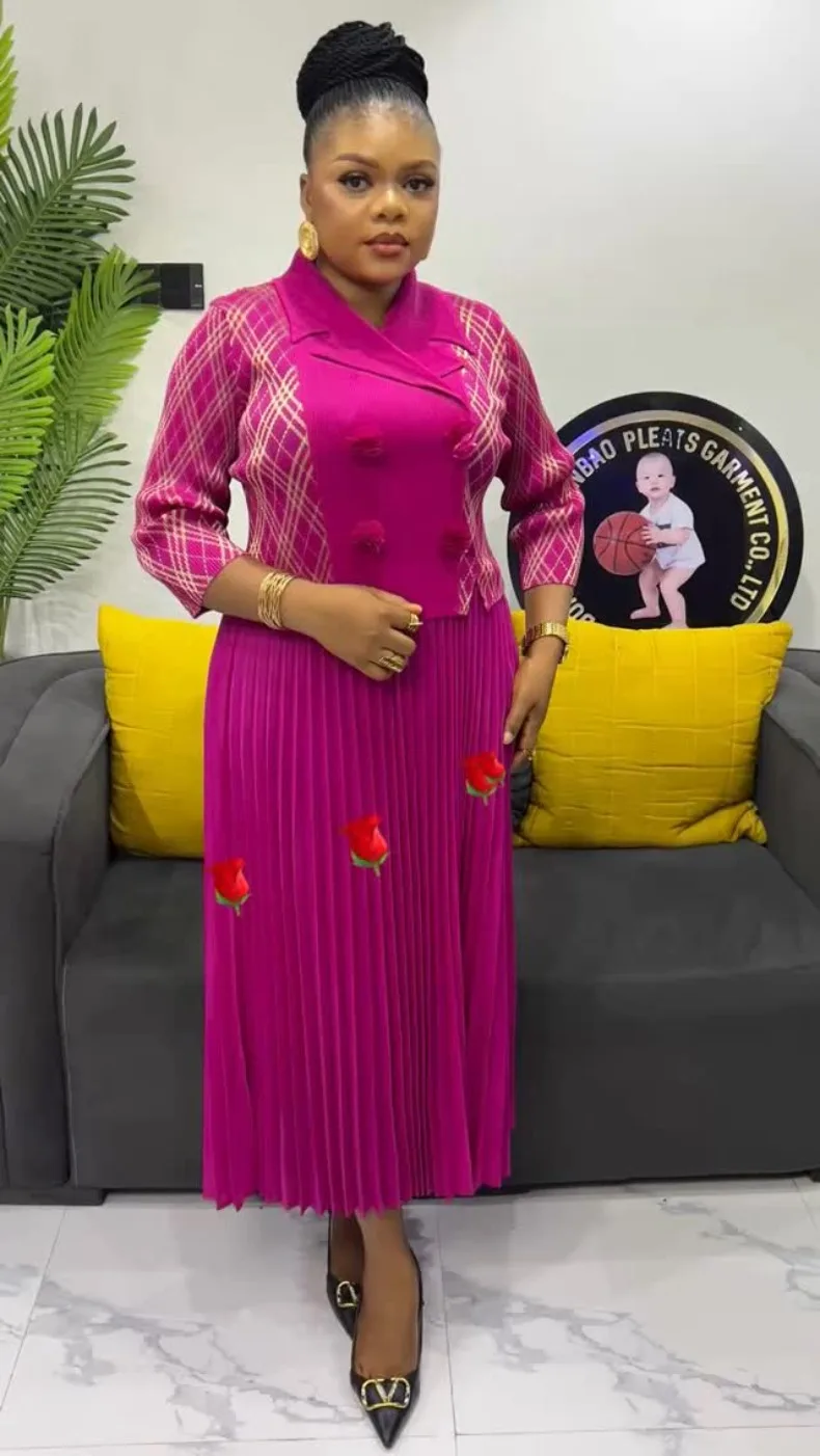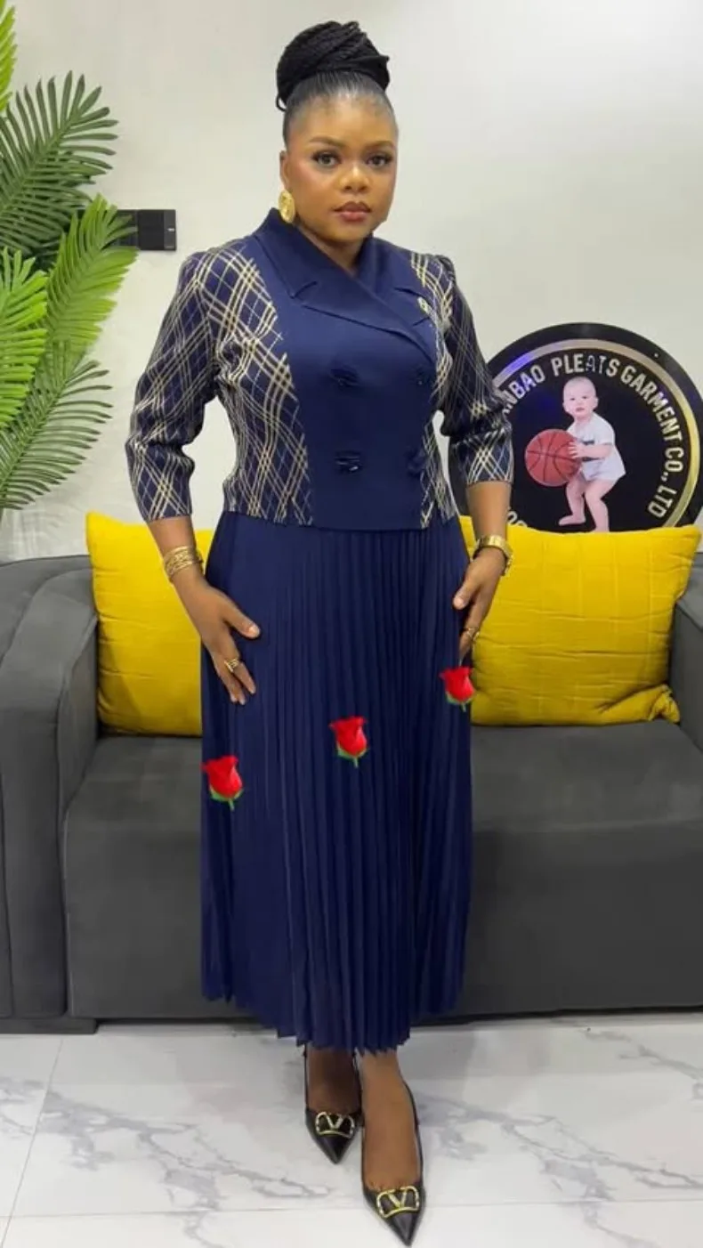 EGRM Miyake Folds Pleated Dress For Women 2025 New Printed Suit Collar Fashion A-line Skirt Elegant Party Women's Clothing 6R578