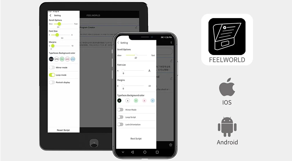 The TP2A equips APP for smartphone/tablet which suitable for Android & IOS system. With bluetooth remote control, you could easily play & pause, speed up & slow down, change the text and background color, etc.