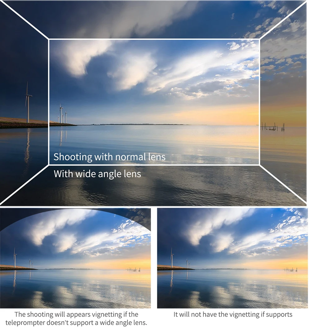 TP2A supports shooting with wide angle lens more than 40mm, providing larger vision without vignetting. For tablet prompting, focal length need to be more than 50mm.