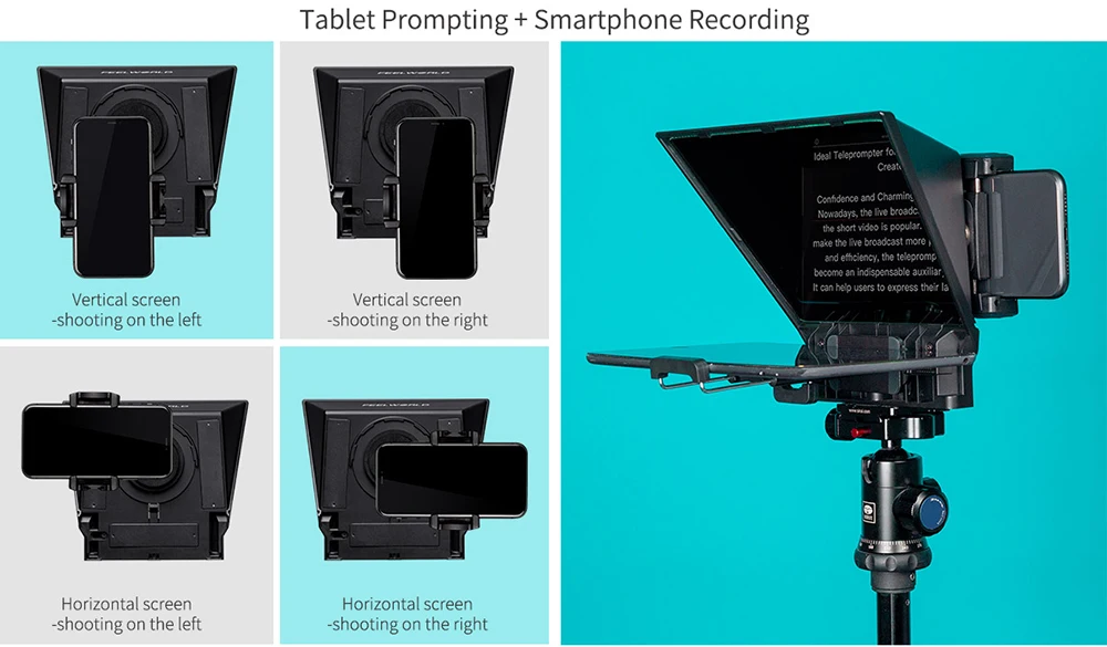 Nowadays, the live broadcast especially the short video is popular. In order to make the live broadcast more professional and efficiency, the teleprompter has become an indispensable auxiliary device. It can help users to express their language smoothly and further shorten the distance between the anchor and the audience. FEELWORLD TP2A is a lightweight and portable teleprompter which feature with standard beam splitter allows you to clearly read scrolling text while looking directly into the camera, perfect for vlog, live broadcast, online class, video recording, interviews, video studio, news and presentation. No need to recite the script! It can be prompted via smart phone or tablet while DSLR camera or phone is shooting. Supports wide angle lens, Android/iOS app, bluetooth remote control, the operation is easy and convenient, make the video faster and easier. It is the ideal teleprompter for video, program creator.