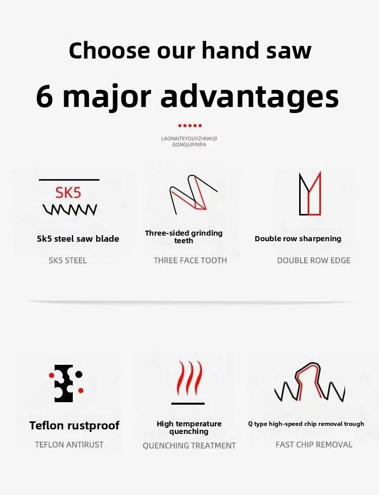4. Collapsible:This saw can be quickly folded, convenient to use, and compact and portable when folded.