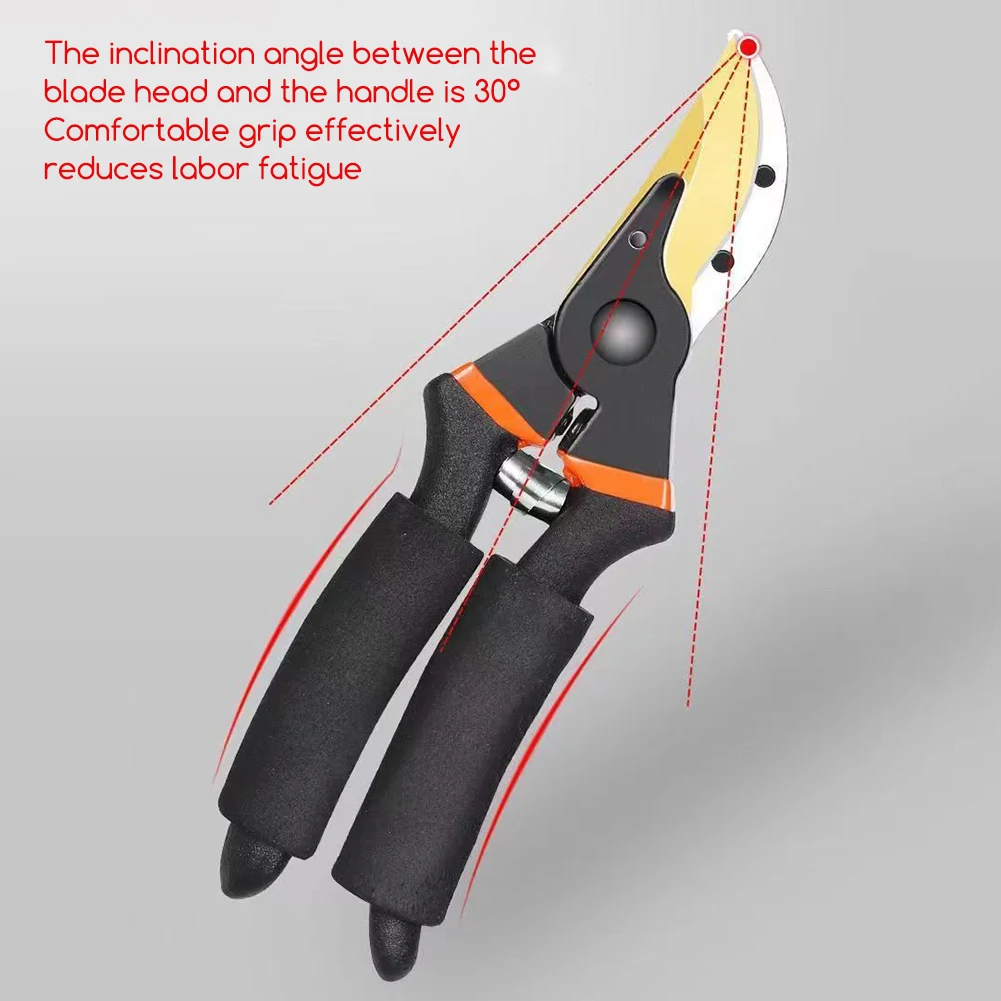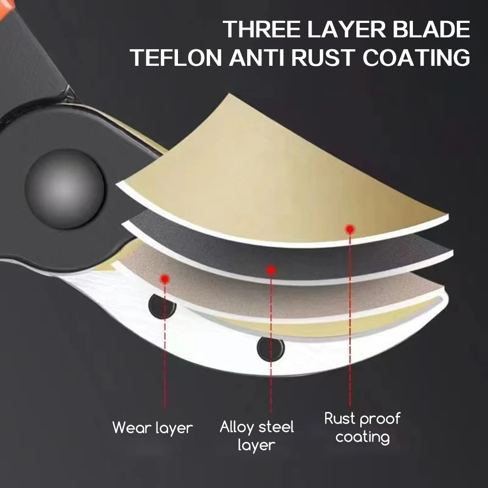 Material: The pruning shears feature blades crafted from steel, providing corrosion protection and reduced friction.Easily cut hardwood branches, wet branches