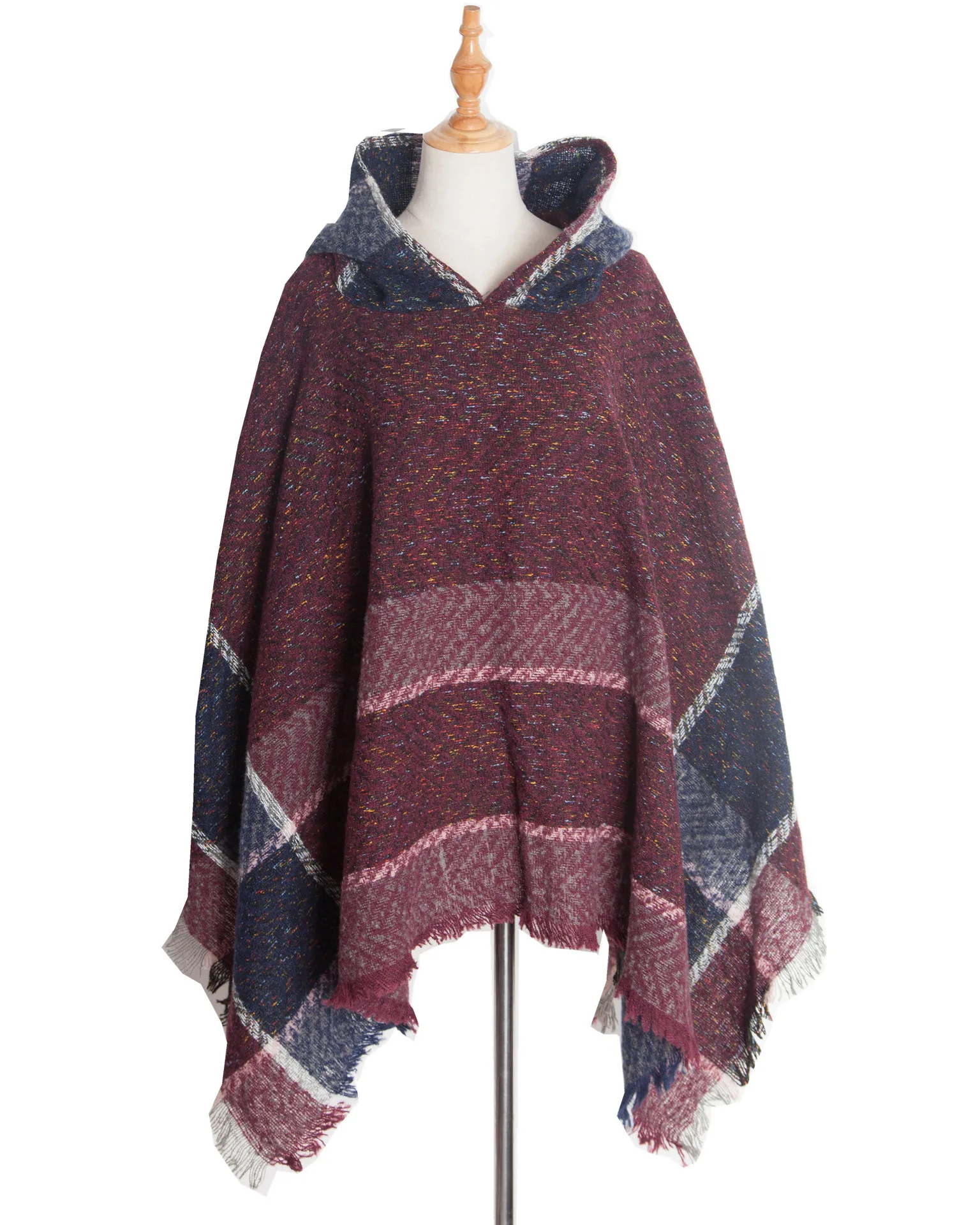 New Autumn Winter Fishbone Pattern Women's Hooded Cape Pullover Cape Women Poncho Lady Capes Black Cloaks