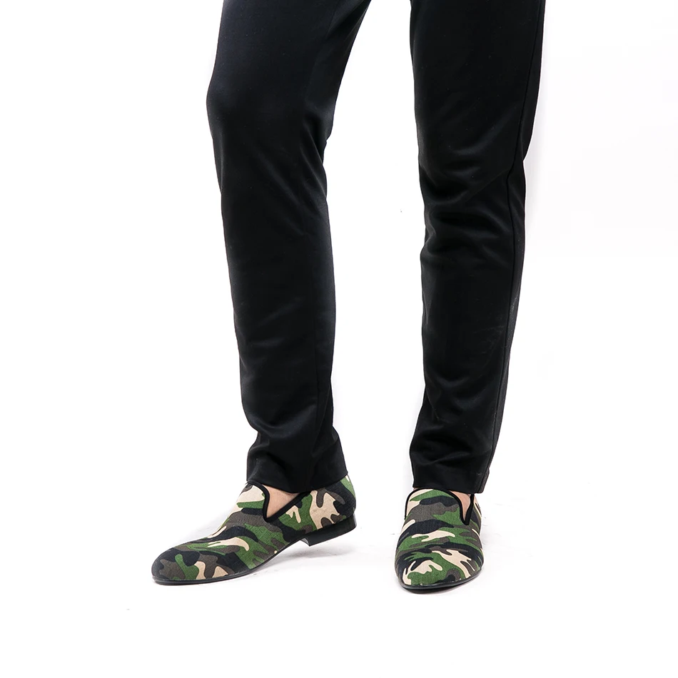 Piergitar British design classic-traditional loafers and military motif Camo print with leather insole men canvas casual shoes