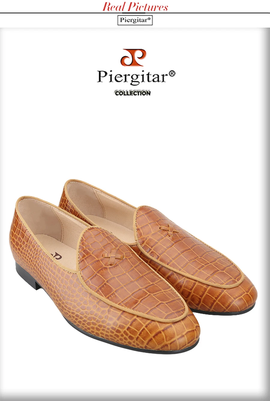 Piergitar Italy Toscana Imported Crocodile Pattern Calfskin Slip-On Loafers Handmade Men's Moccasin For Fashion Party And Prom
