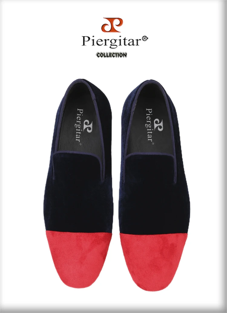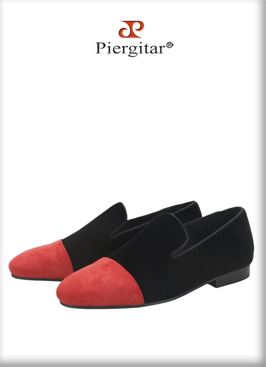 Piergitar Mixed Velvet Men's Loafers For Party And Wedding Handmade Slip-On Moccasins Red Outsole Breathable Leather Insole