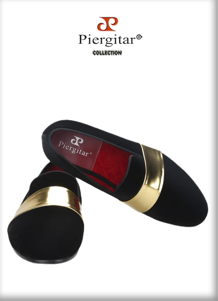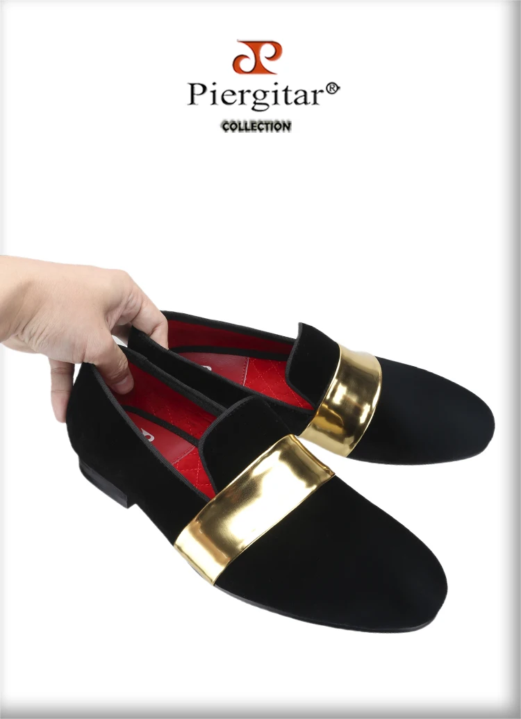 Piergitar New Style Handmade Men Velvet Loafers With Gold Patent Leather Crossbands Fashion Party And Wedding Male Dress Shoes