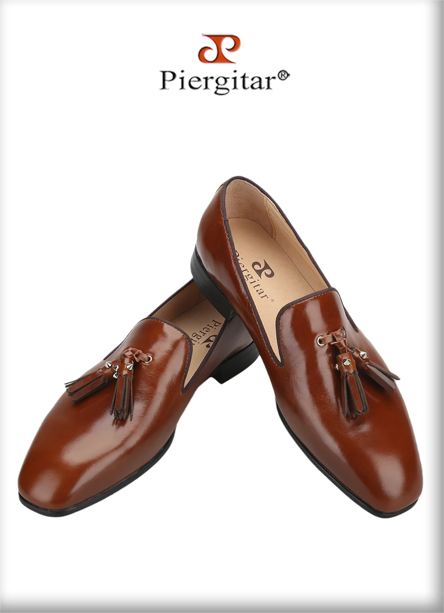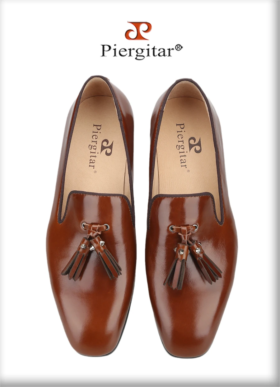 Piergitar Patinated Calf Leather Iconic Dandelion Loafers With Tassels Featuring Metal Spikes CL Brand Same Model Men Moccasins