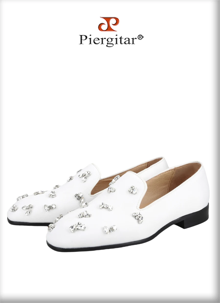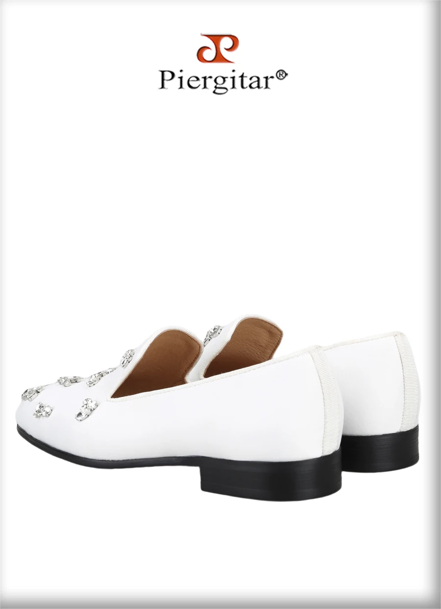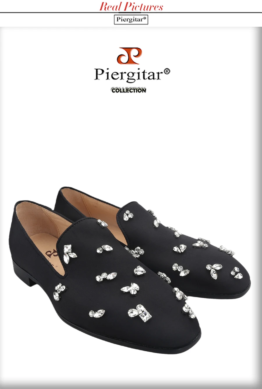 The same design red outsole moccasins with a smooth black crepe satin men's loafer.