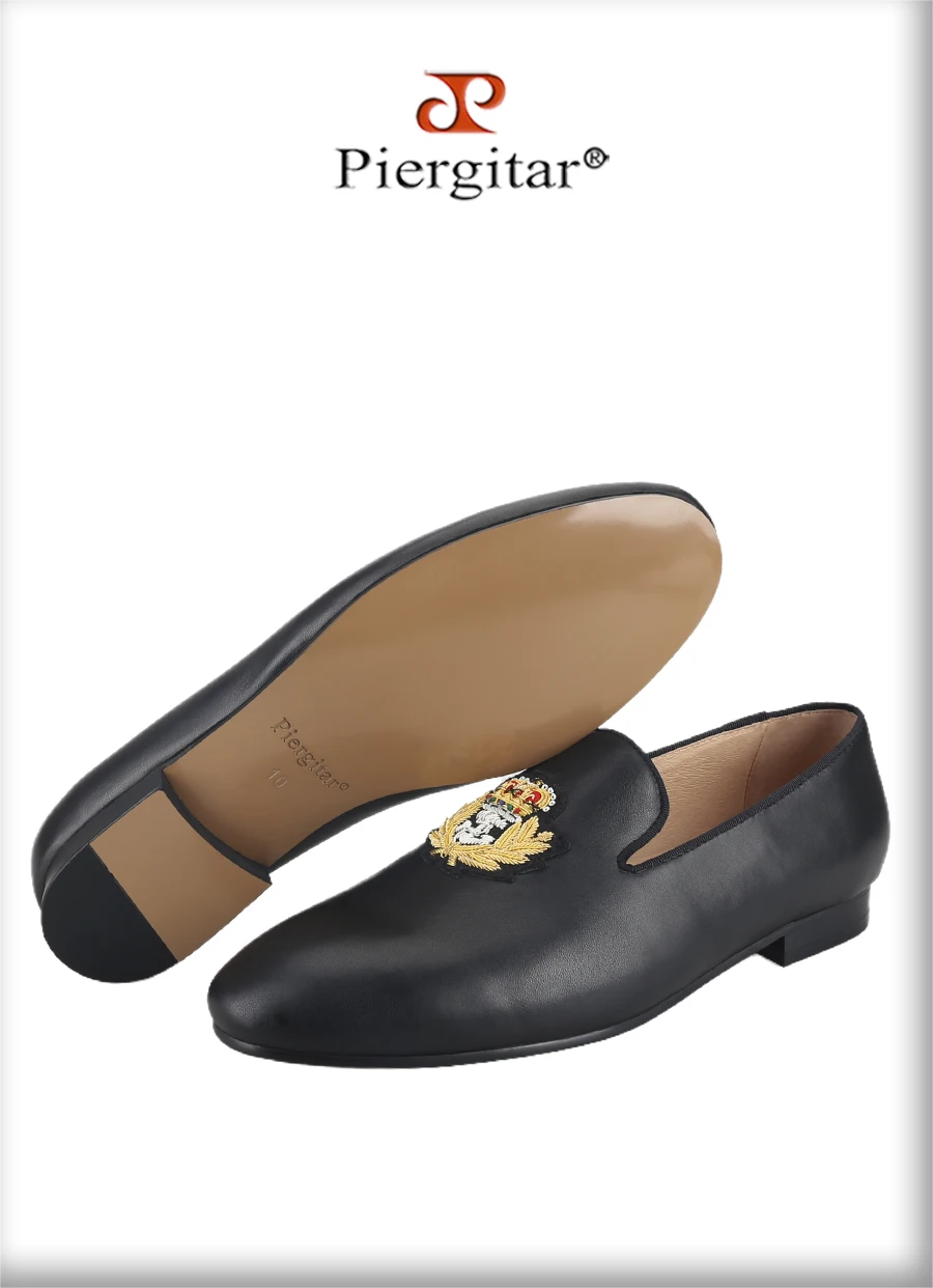 Piergitar Summer New Arrival Cow Leather Men Loafers With Luxurious Royal Style Gold Embroidery For Party Handmade Slip-On Shoes