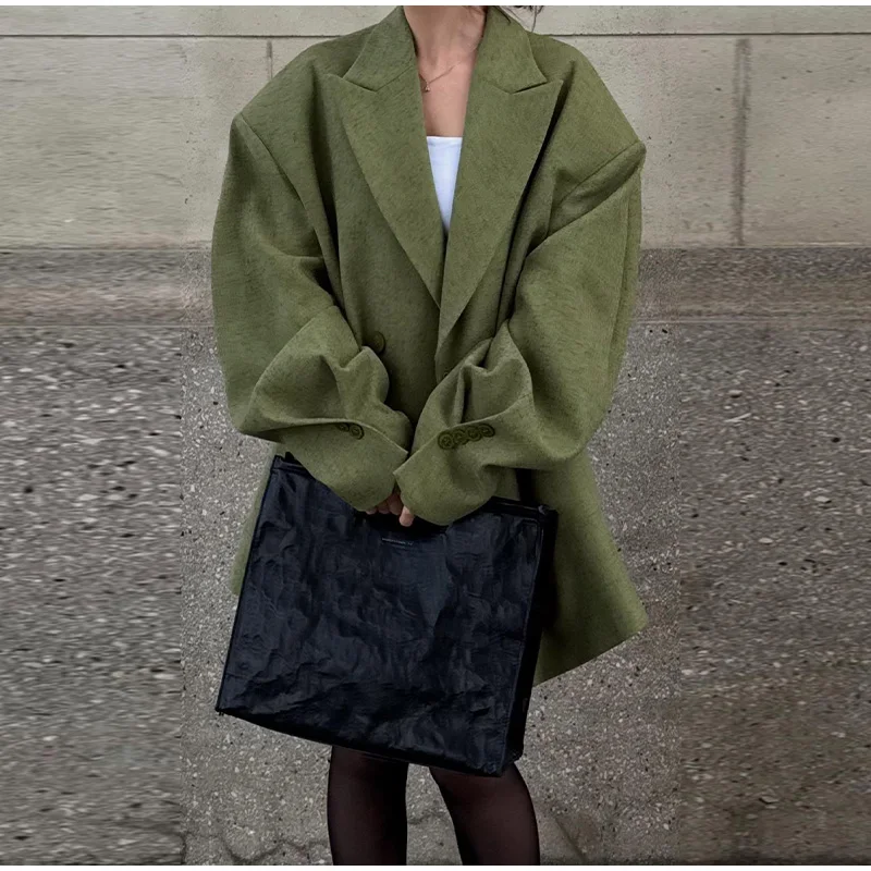 Solid Color Lapel Suit Woman Loose Long Sleeves Double Breasted Jackets Casual Versatile Chic Women's Spring Summer New Coats