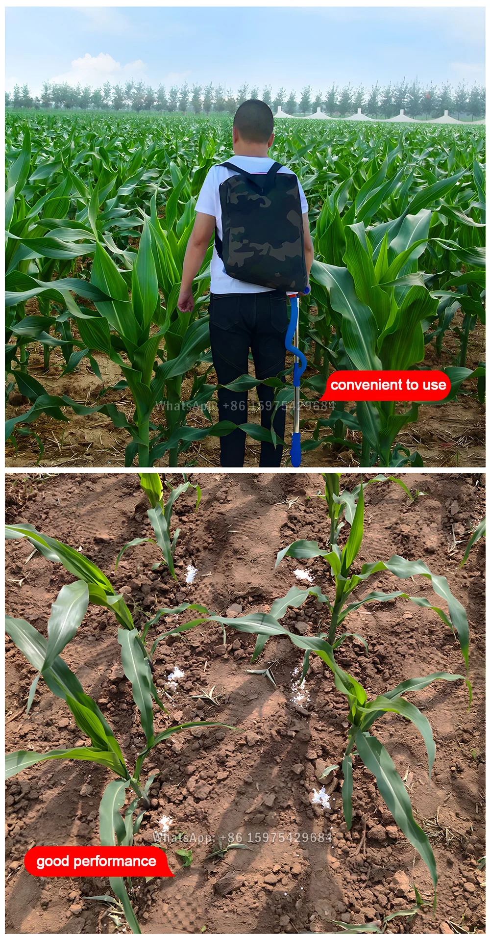 This product is a manual rapid fertilization device, equipped with optional fertilizer bags or fertilizer buckets, which can not only fertilize crops on one side with one hand, but also fertilize crops on both sides with both hands at the same time, and the working efficiency is very high.