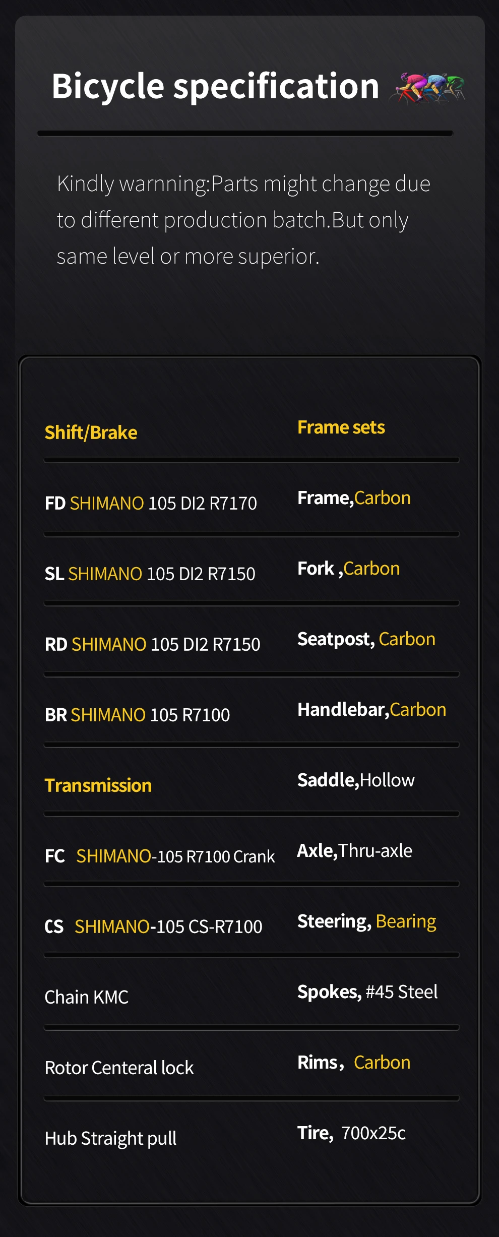 Handlebar: Integrated T1000 carbon fiber, 420*31.8mm