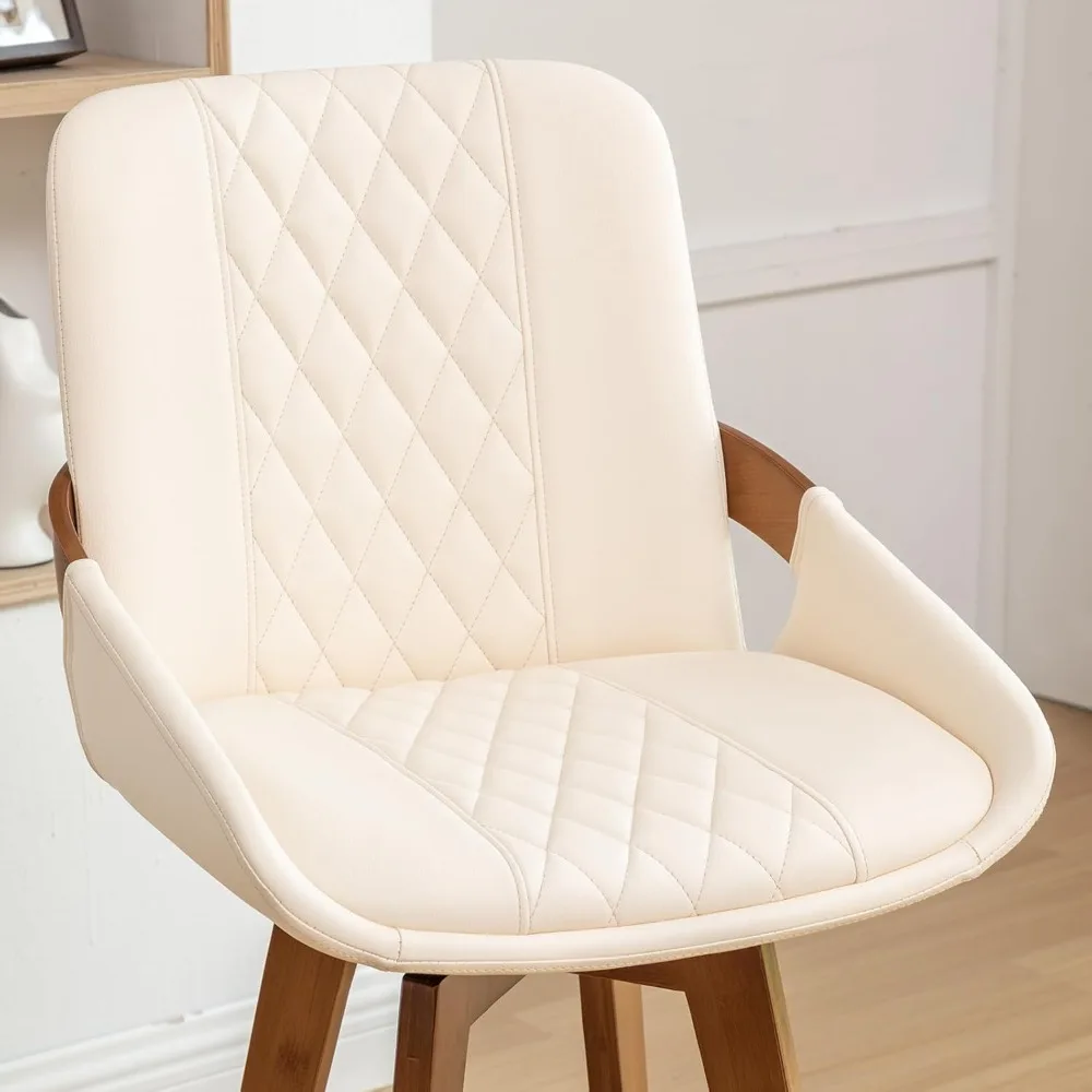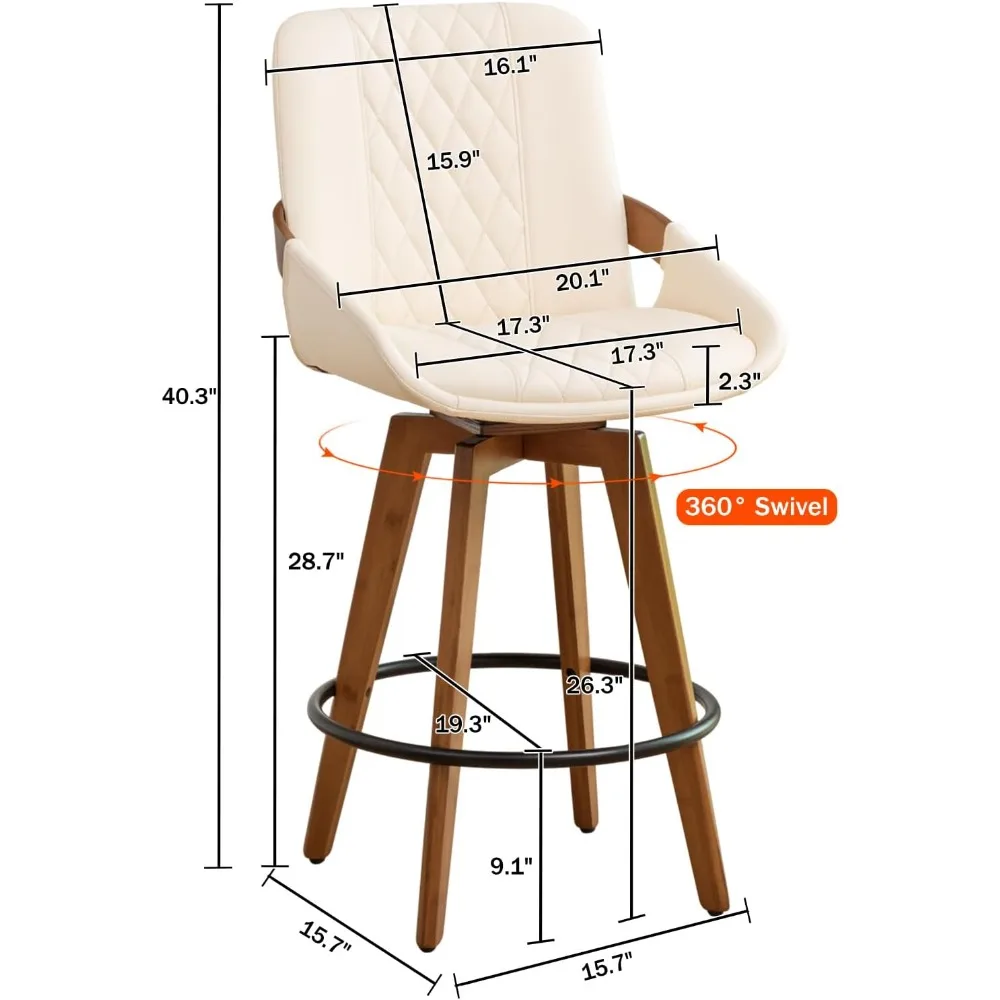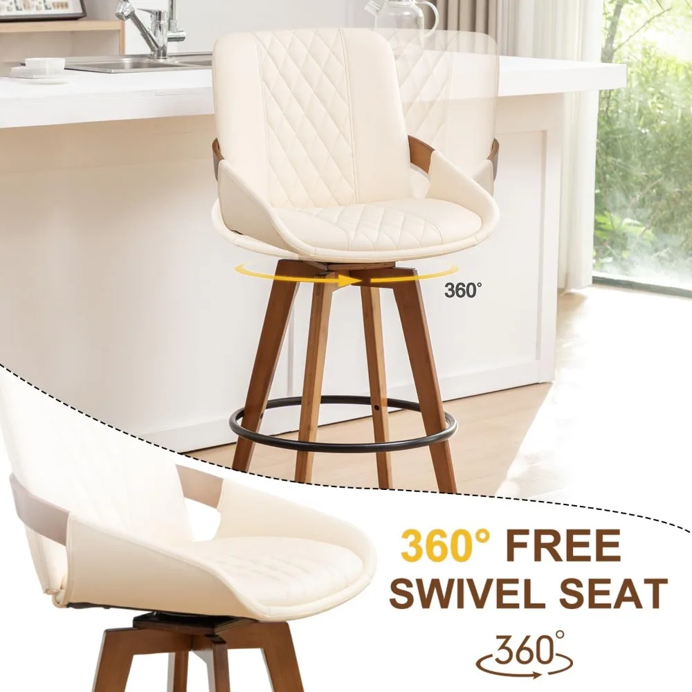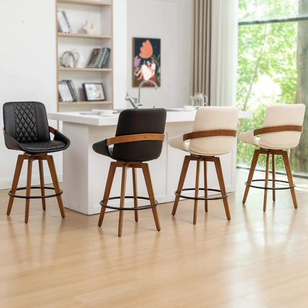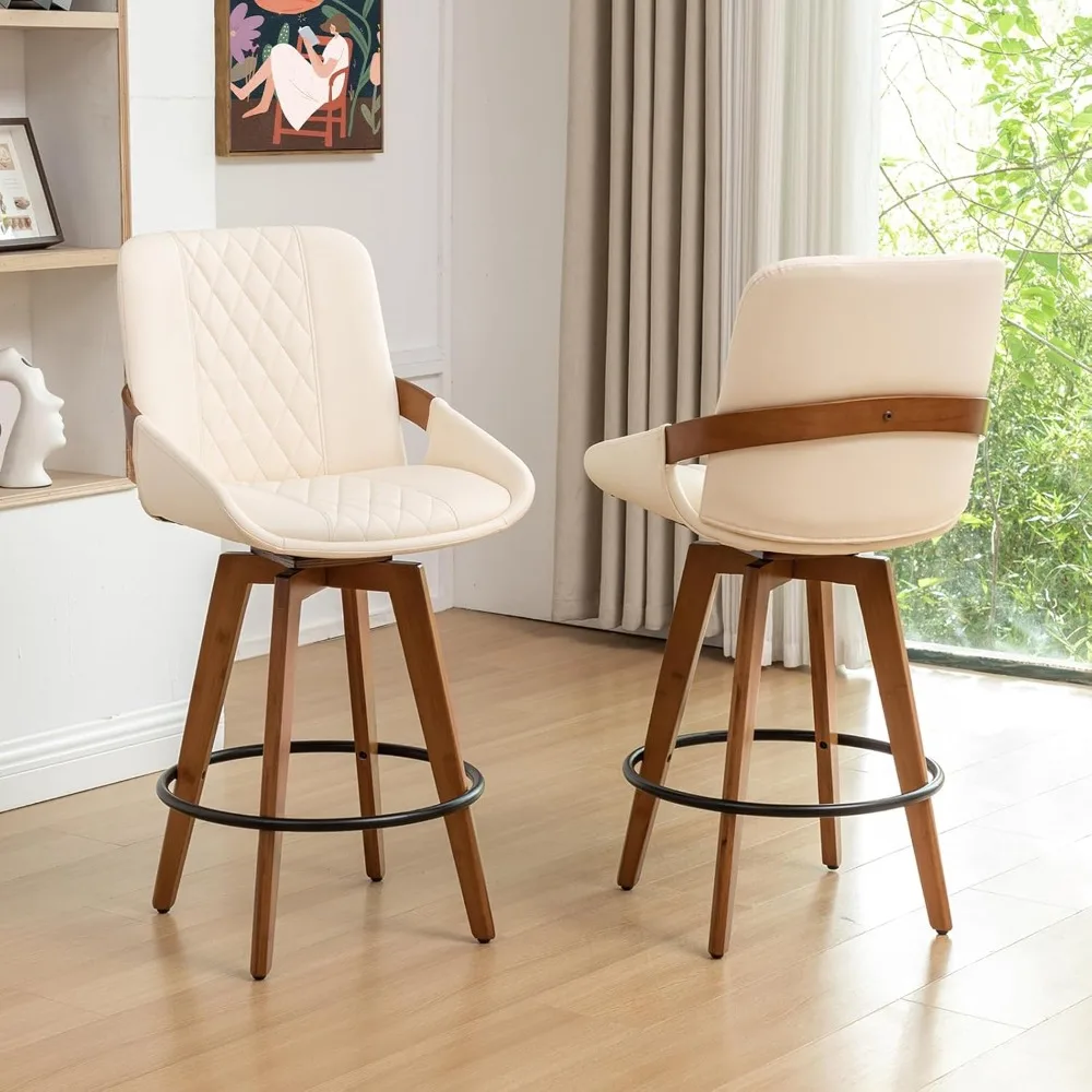 Counter Stools Set of 2, Mid Century Modern Retro Swivel Bar Chairs, Furniture with Curved Back, Faux Leather Upholstered