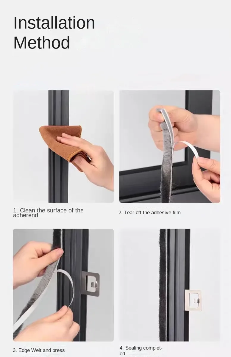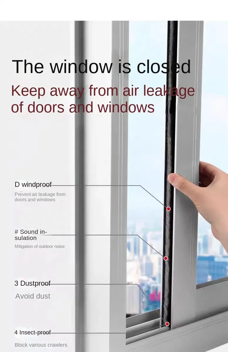 Black 10M Door Window Windproof Dust Sound Insulation Seal Strip Self Adhesive Home Wardrobe Door Window Gap Filler Brush Strip