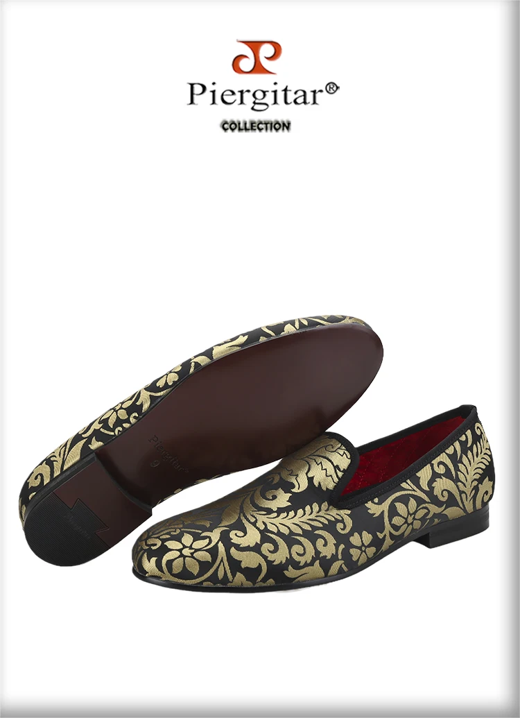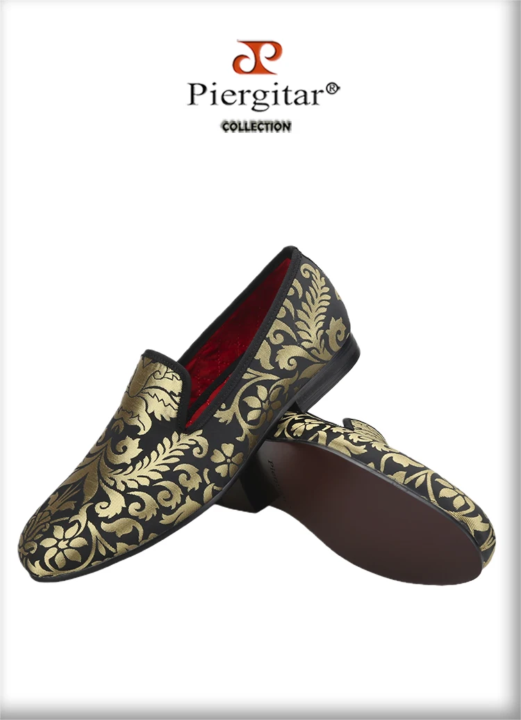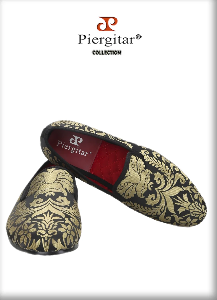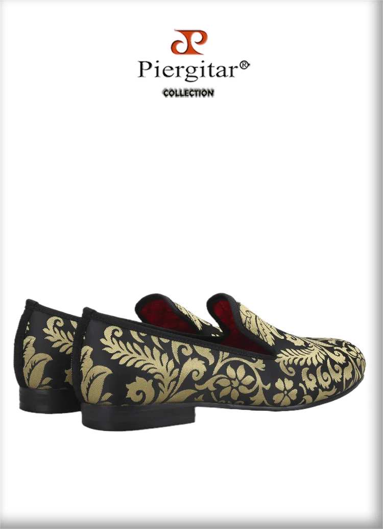 Piergitar 2023 New Upgrade Style Baroque Gold Jacquard Silk Men Loafers For Party Pair With Gold Suit Plus Size Moccasins