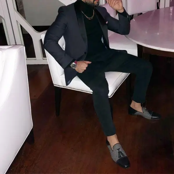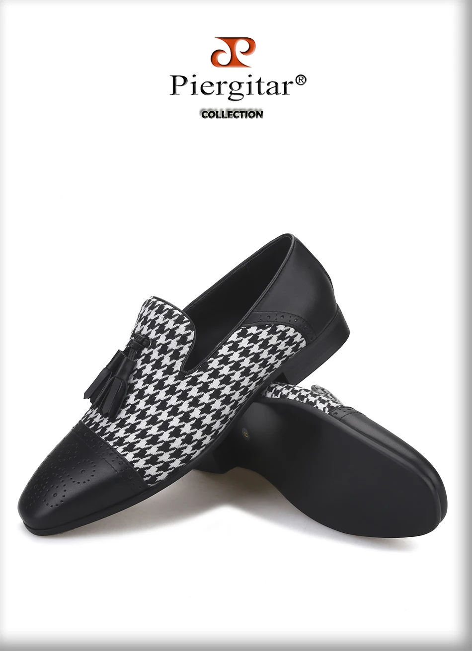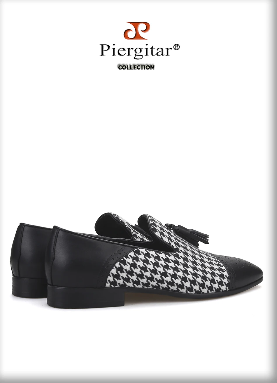 Piergitar brand new design houndstooth pattern men tassel shoes handmade men's loafers for party and prom men smoking slipper