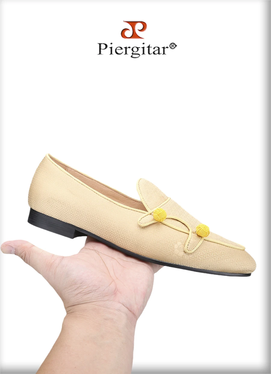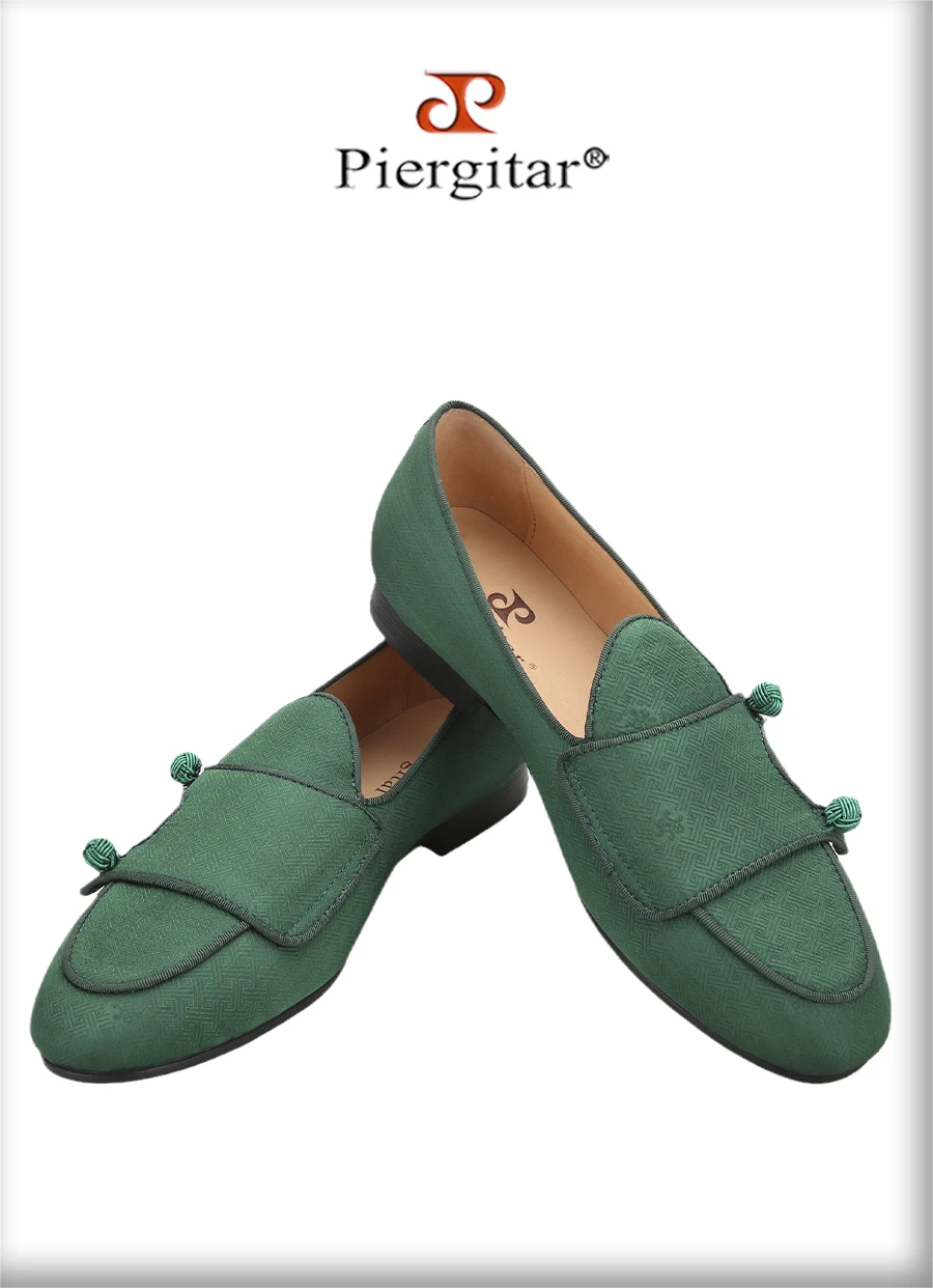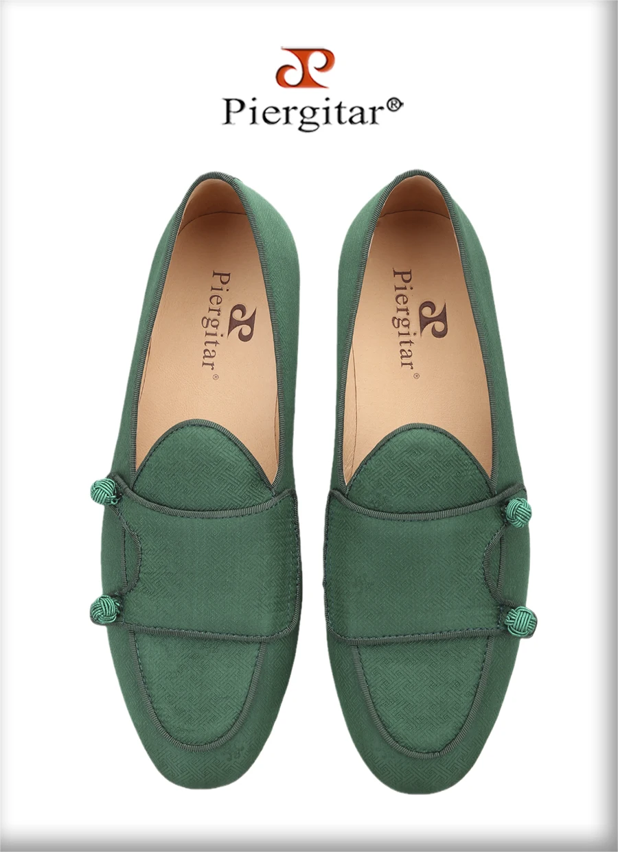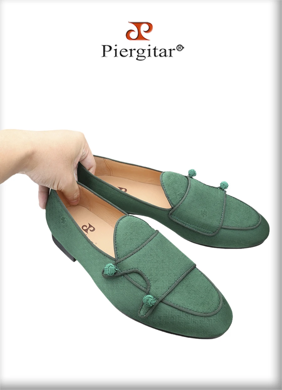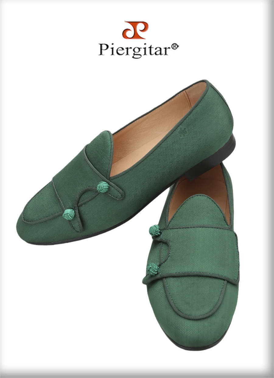 Chinese Imperial Style Silk Men's Monk Shoes Handmade Balls Buttons Slip-On Smoking Shoes