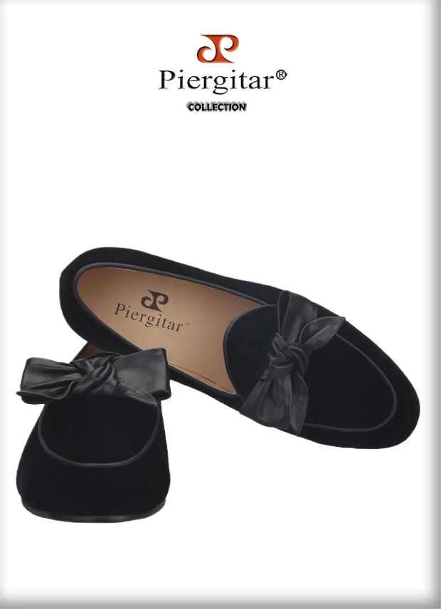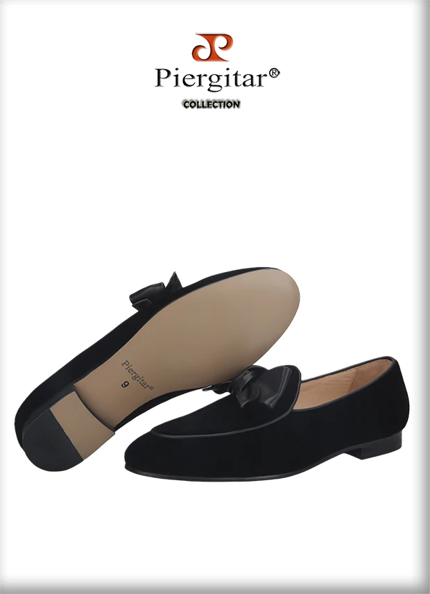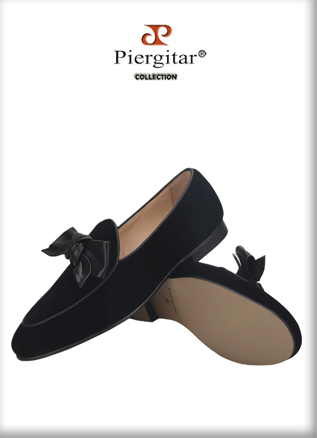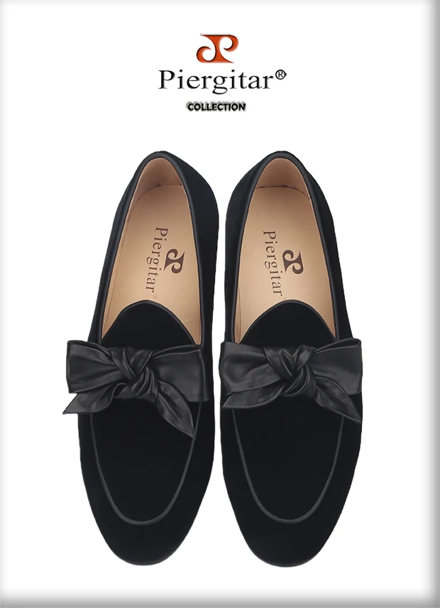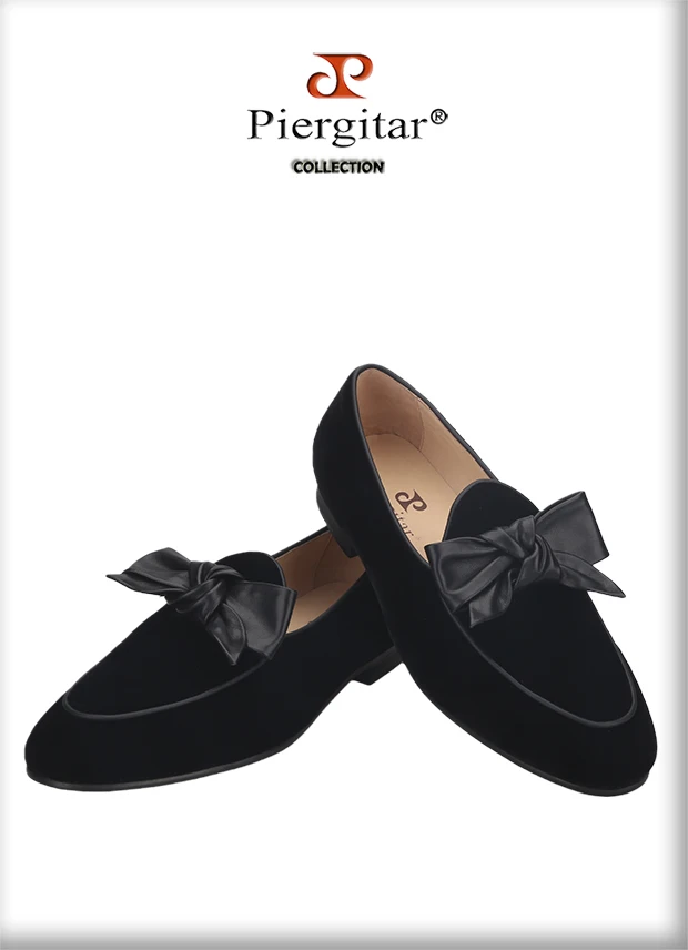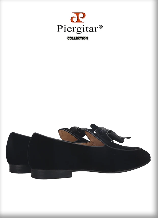 High Quality Men's Smoking Loafers in British Classic Style with Handmade Leather Bow Tie, Black Velvet Moccasin