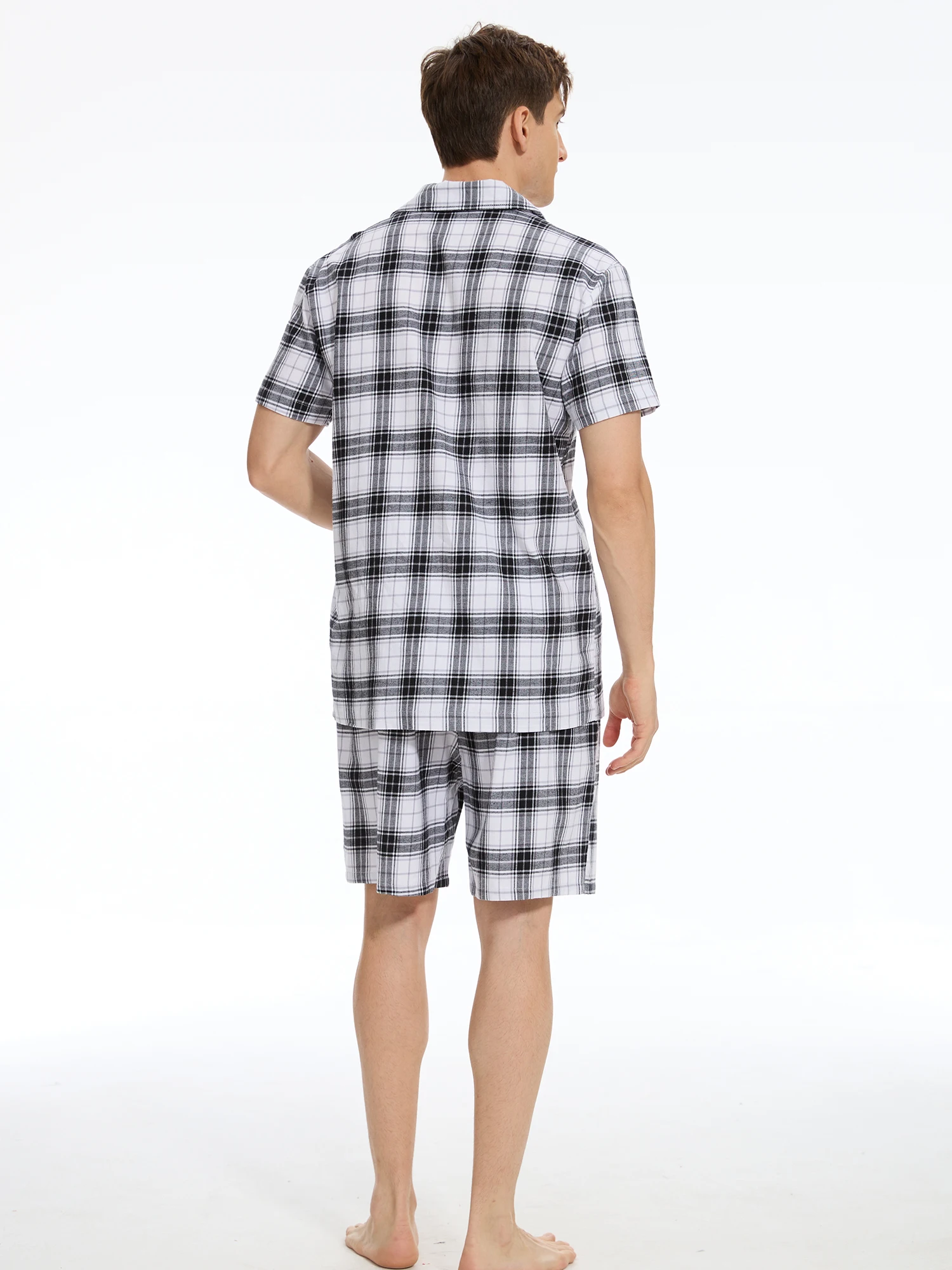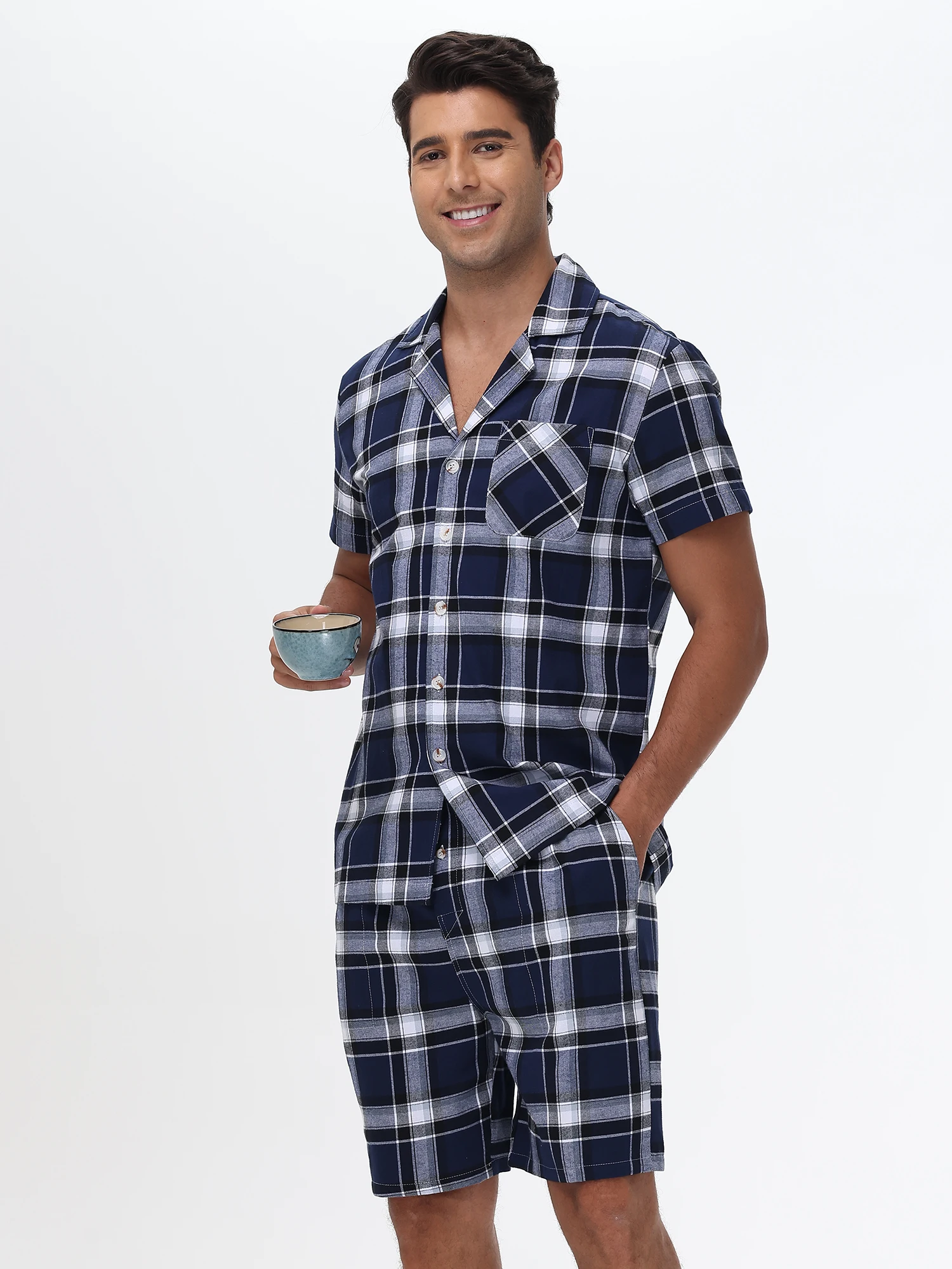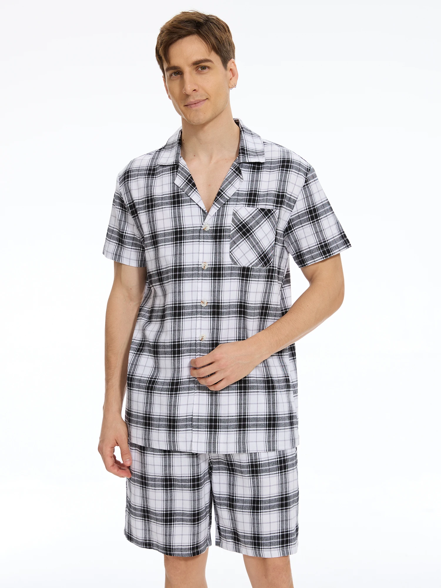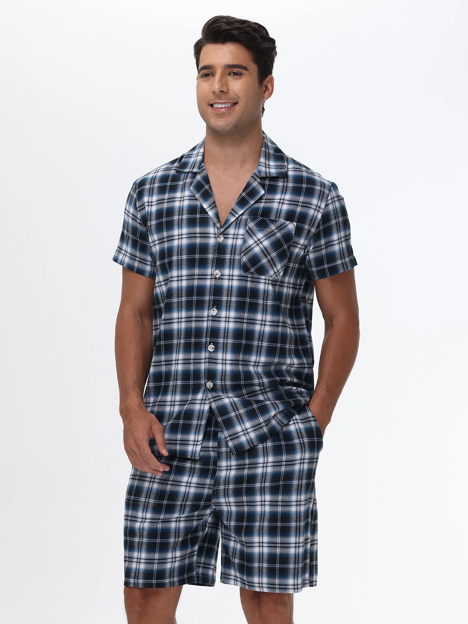 Men Summer Short Pajama Set, 2Pcs 100% Cotton Breathable Crop Pajama Short Sets Bottoms & Tops Cozy Suit for Home Outdoor
