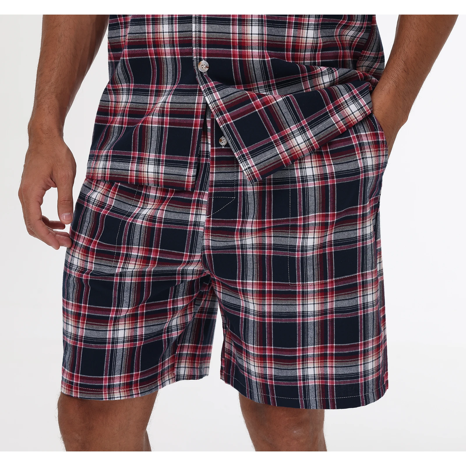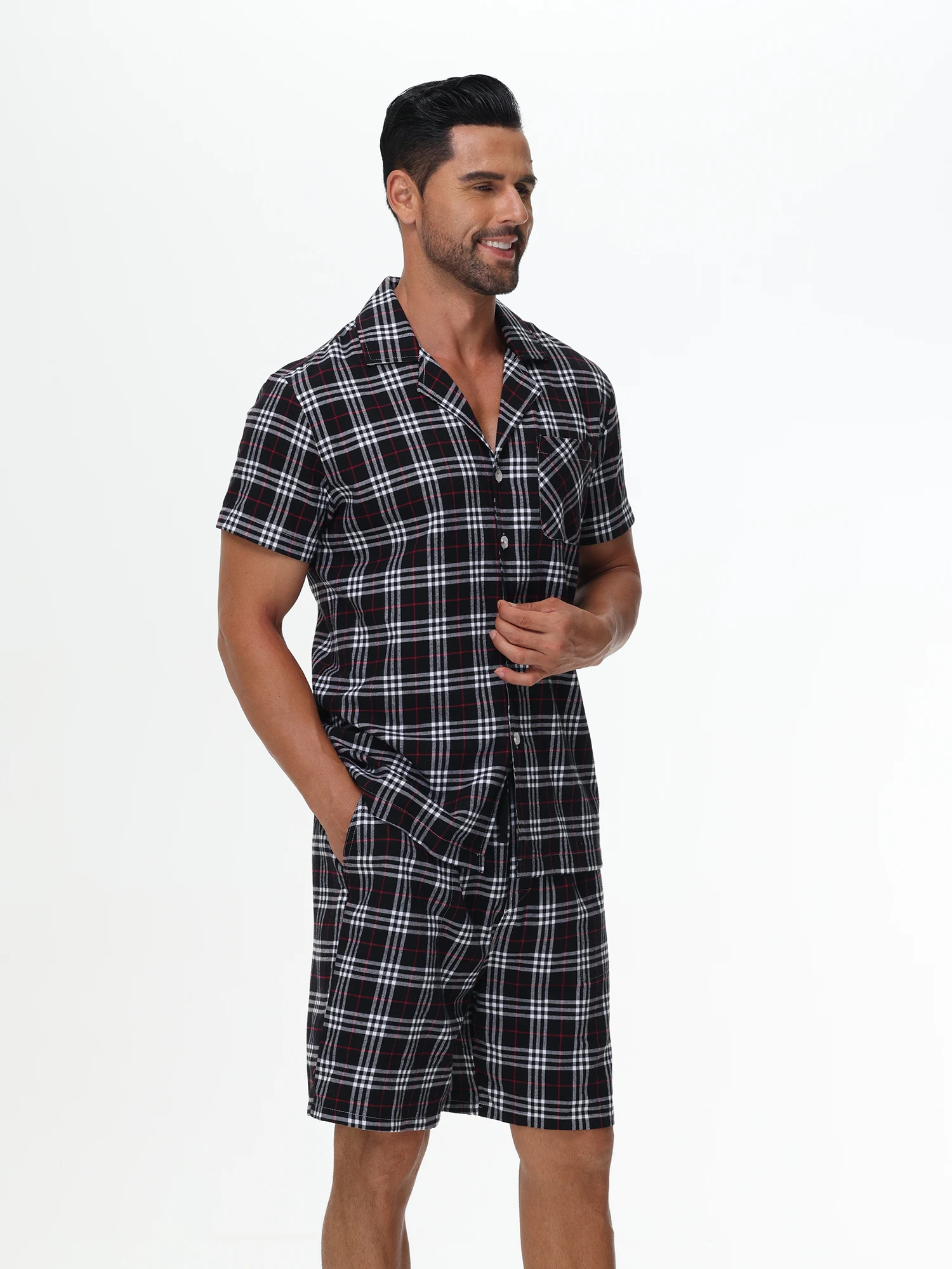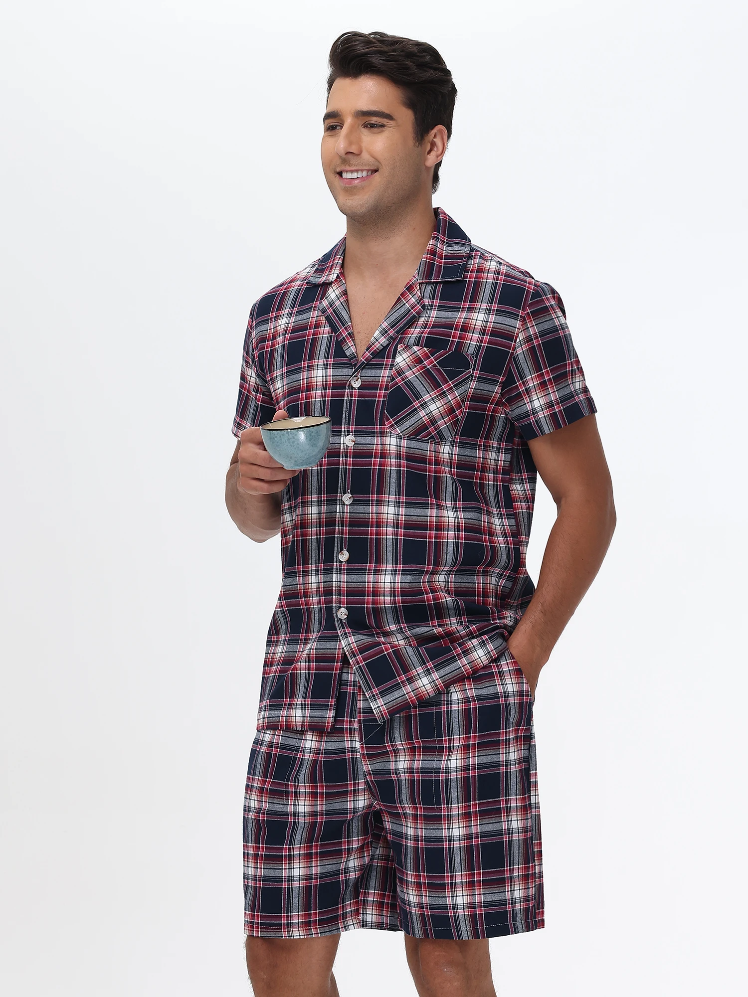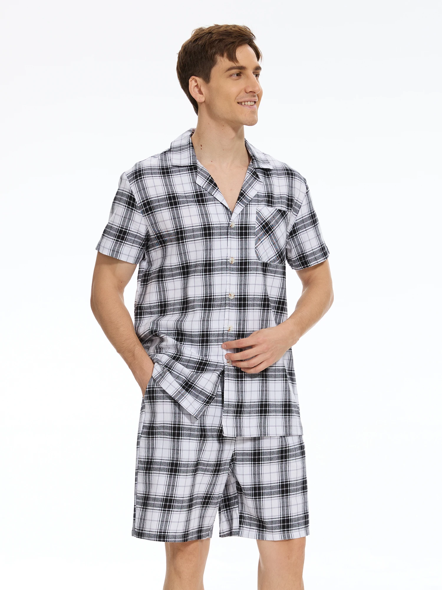 Men Summer Short Pajama Set, 2Pcs 100% Cotton Breathable Crop Pajama Short Sets Bottoms & Tops Cozy Suit for Home Outdoor