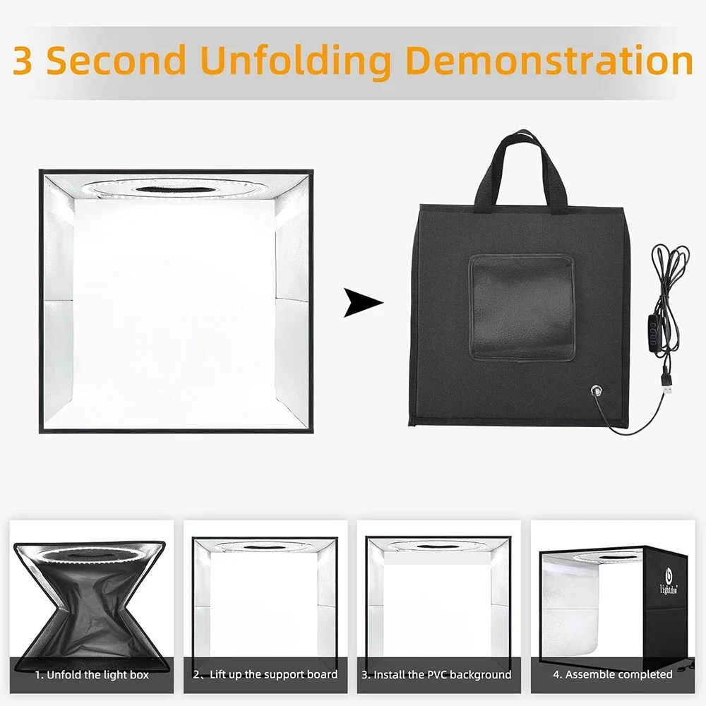 EASY TO USE: Setup is quick and easy, and the tent includes built-in LED lights that provide ample illumination for your photos. You can use the tent for any kind of studio photography, including product photography, still life and more.