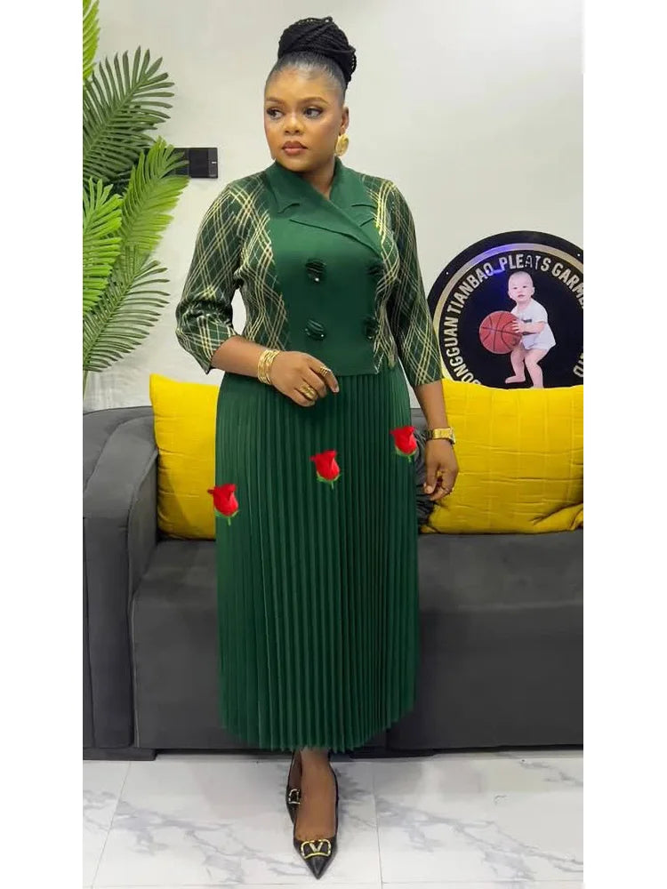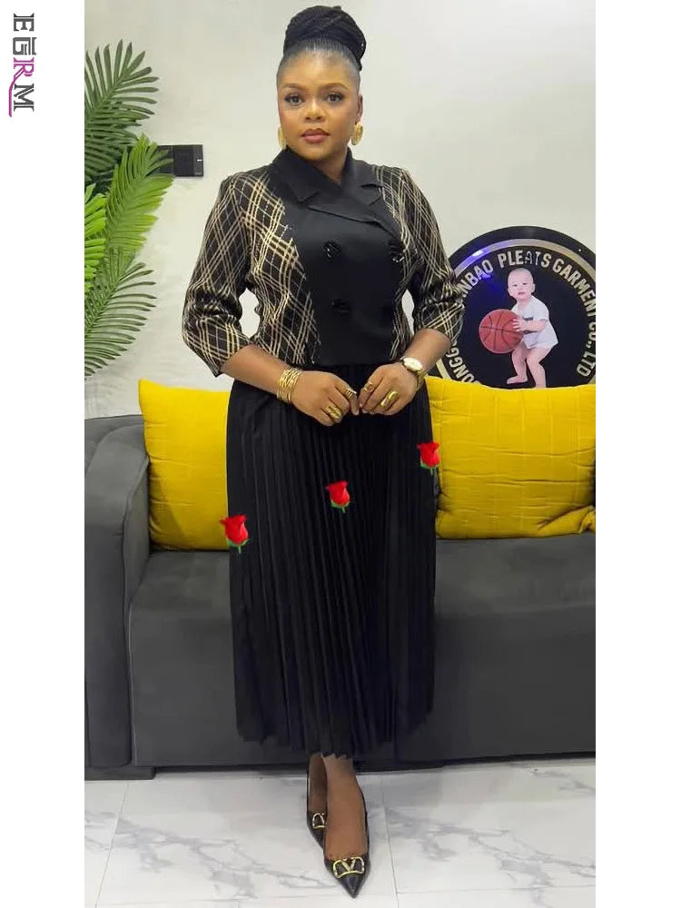 EGRM Miyake Folds Pleated Dress For Women 2025 New Printed Suit Collar Fashion A-line Skirt Elegant Party Women's Clothing 6R578