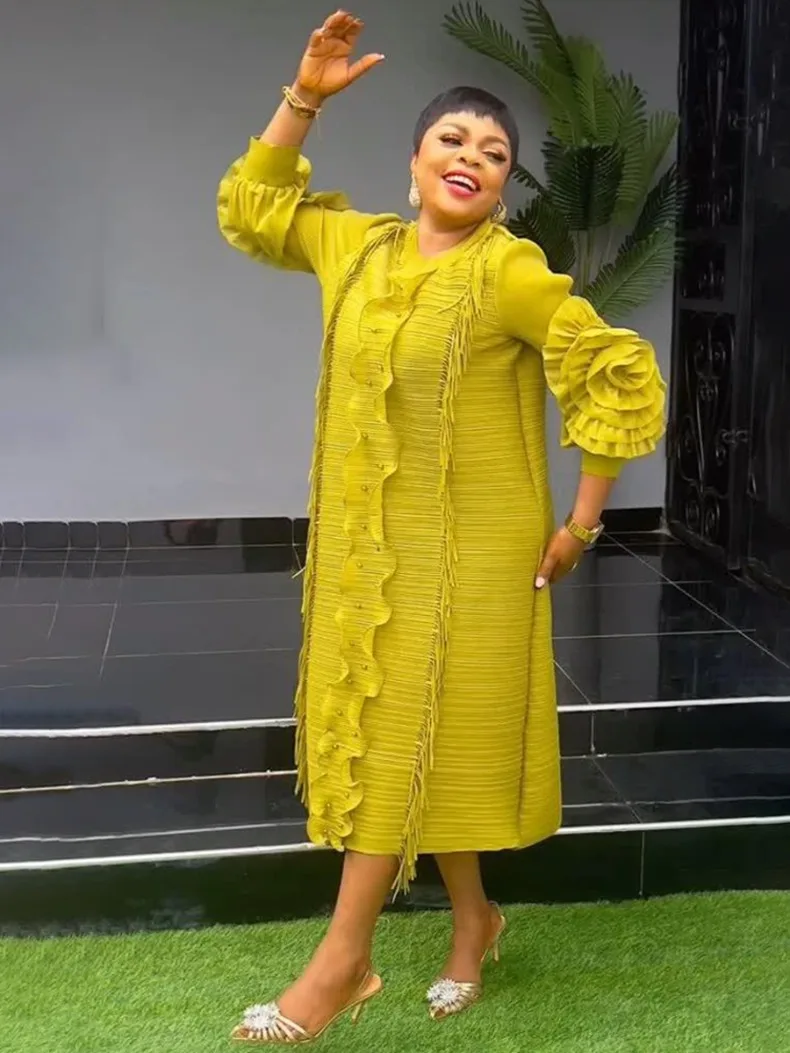 Round Collar Full-Sleeve Ruffles Loose Dress