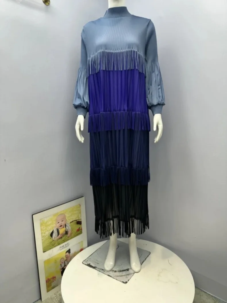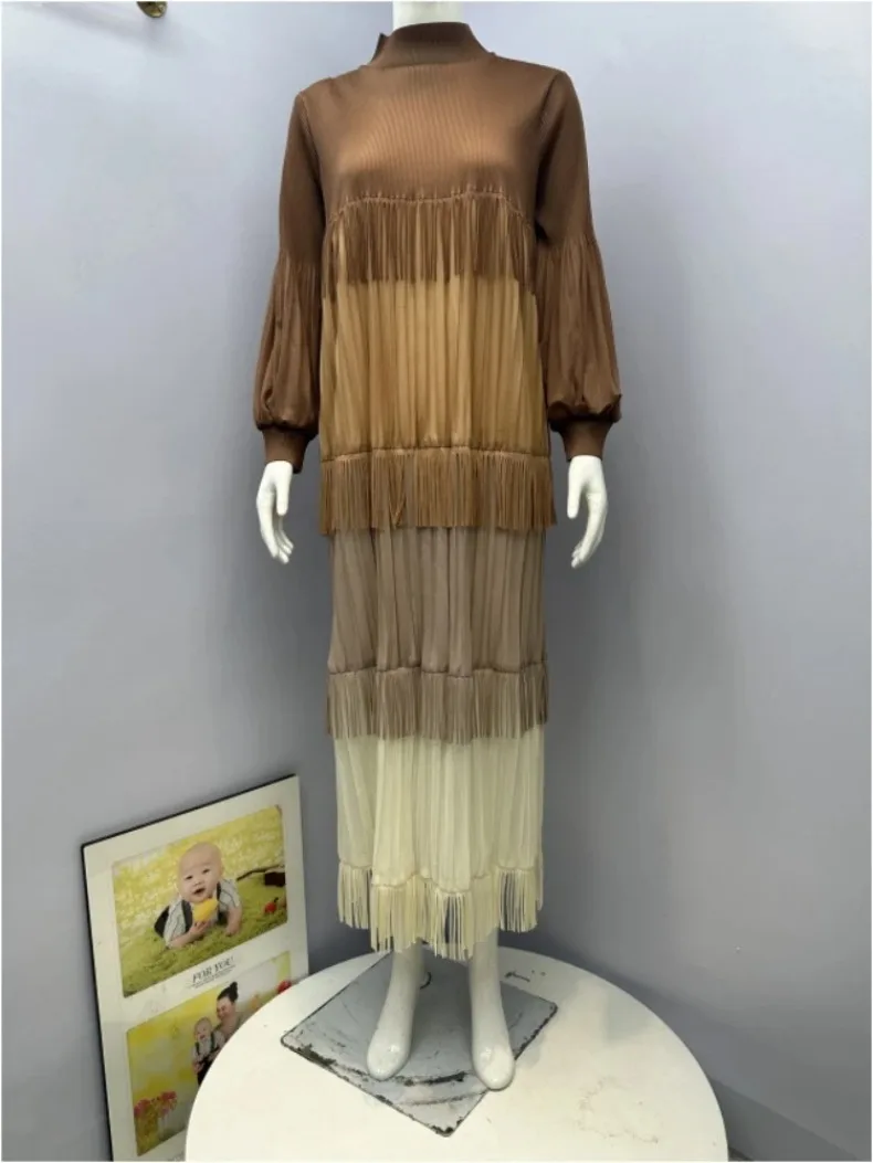 Women's Pleated Puff Sleeve Tassel Dress
