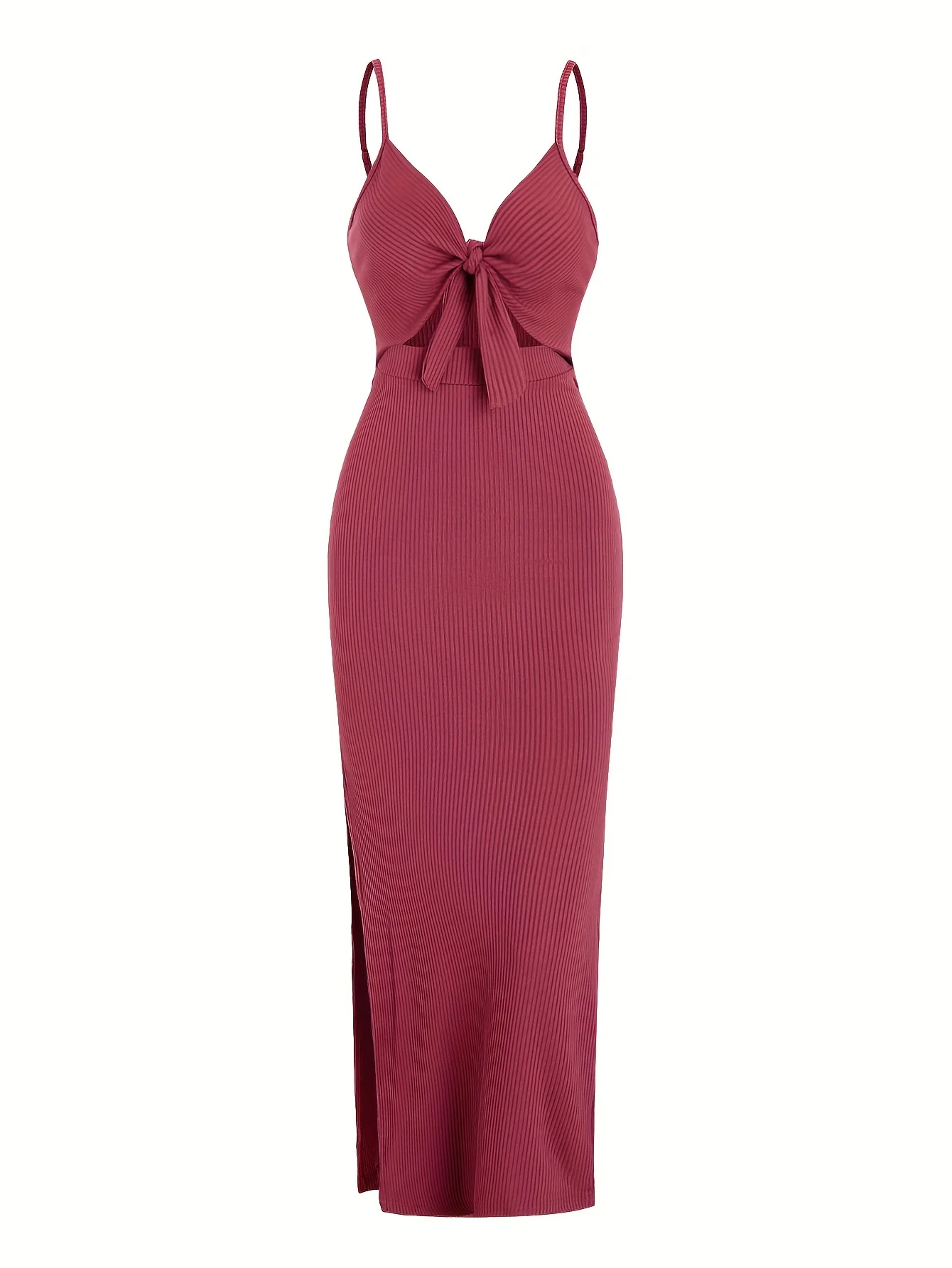 Sexy and Stylish: The spaghetti strap design and cutout side split add a touch of sexiness to your look, while the ribbed knot detail creates a stylish and trendy vibe.