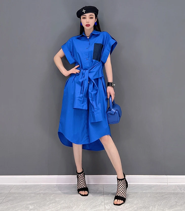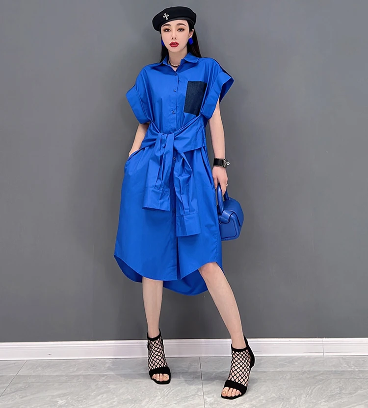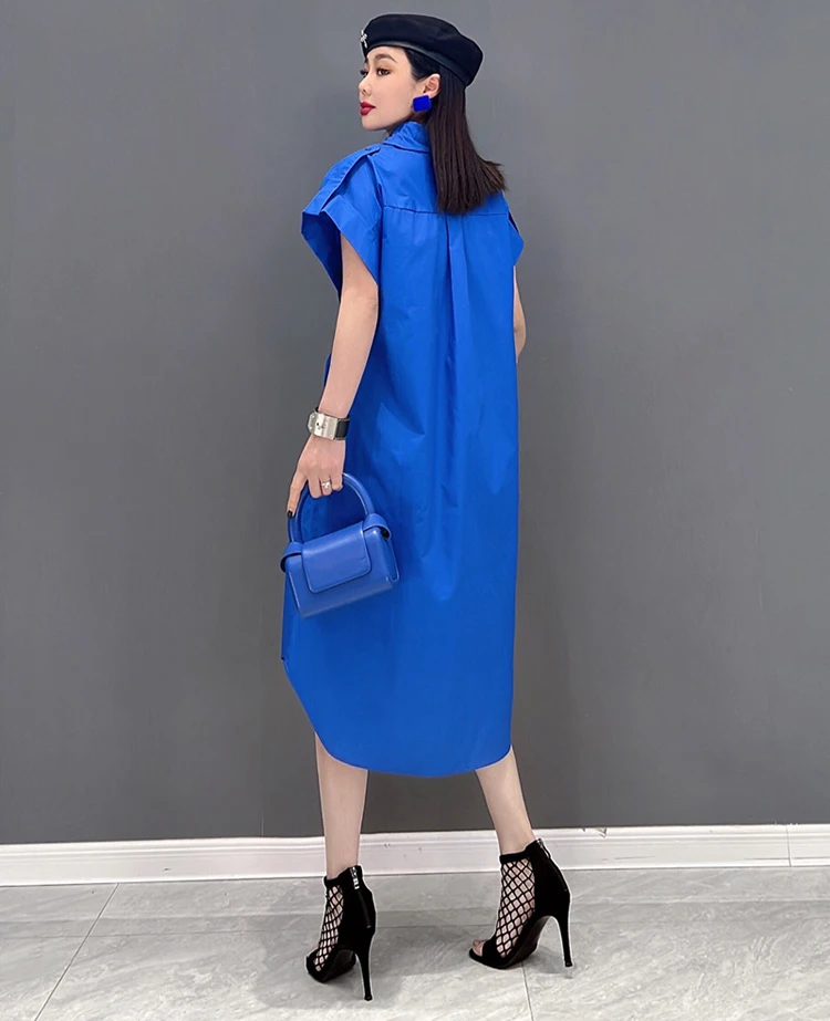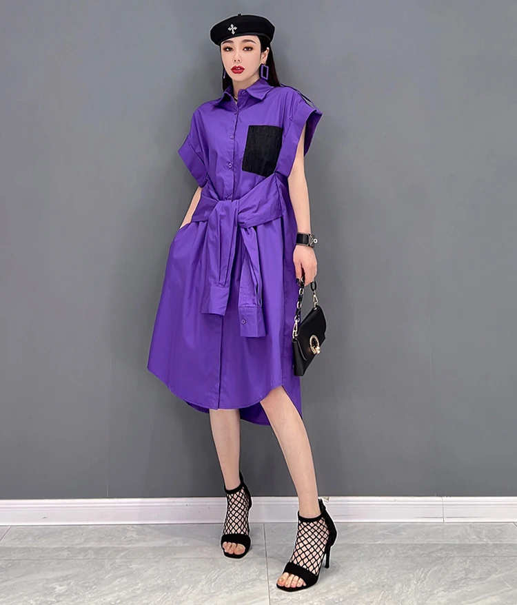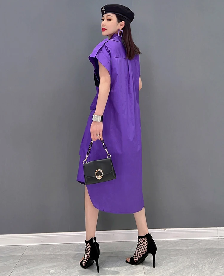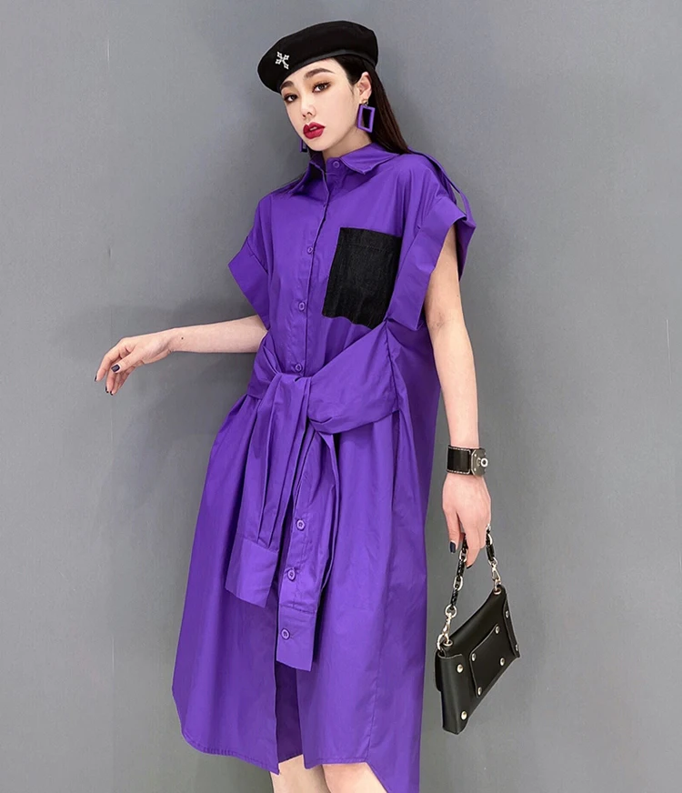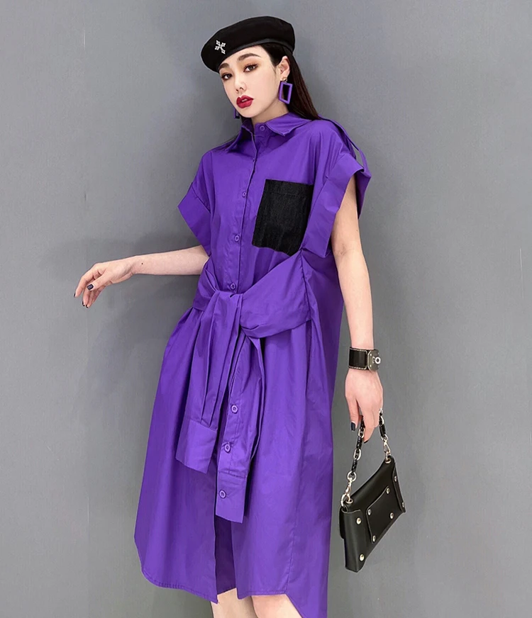 Extra Sleeves Decorated New 2025 Summer Korean Style Woman Purple Shirt Dress Loose Fit Chic Unique Big Size Casual Robe JKXD005