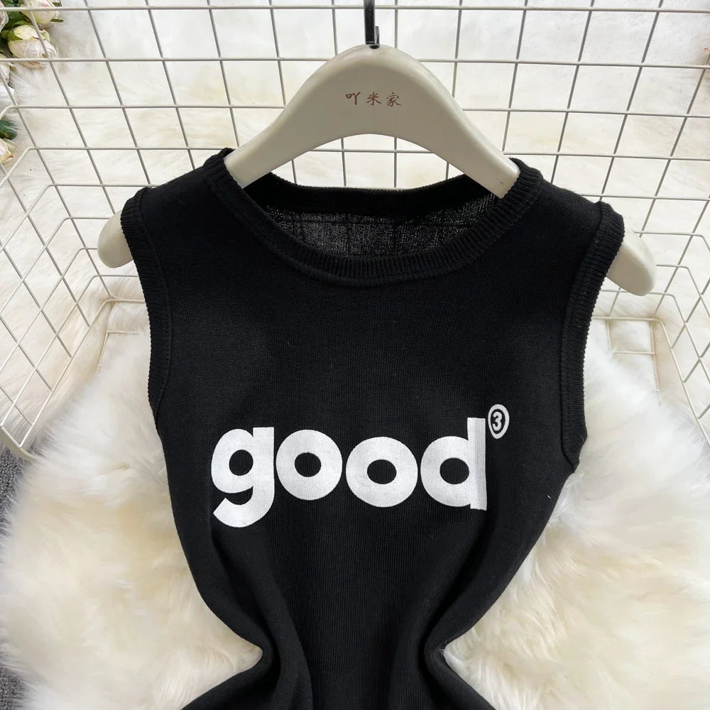 Fashion Y2K Letters Knitted Women Dress Sexy Tank Sleeveless Slim Elastic Bodycon Summer Dress Streetwear Vestidos