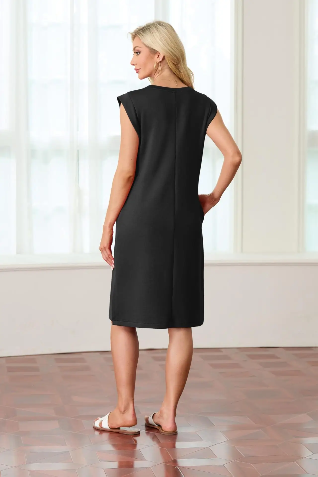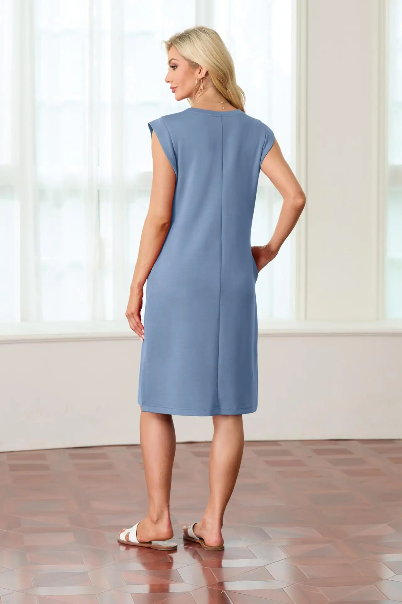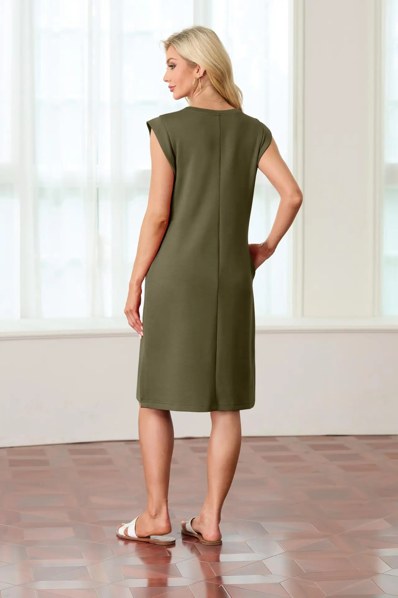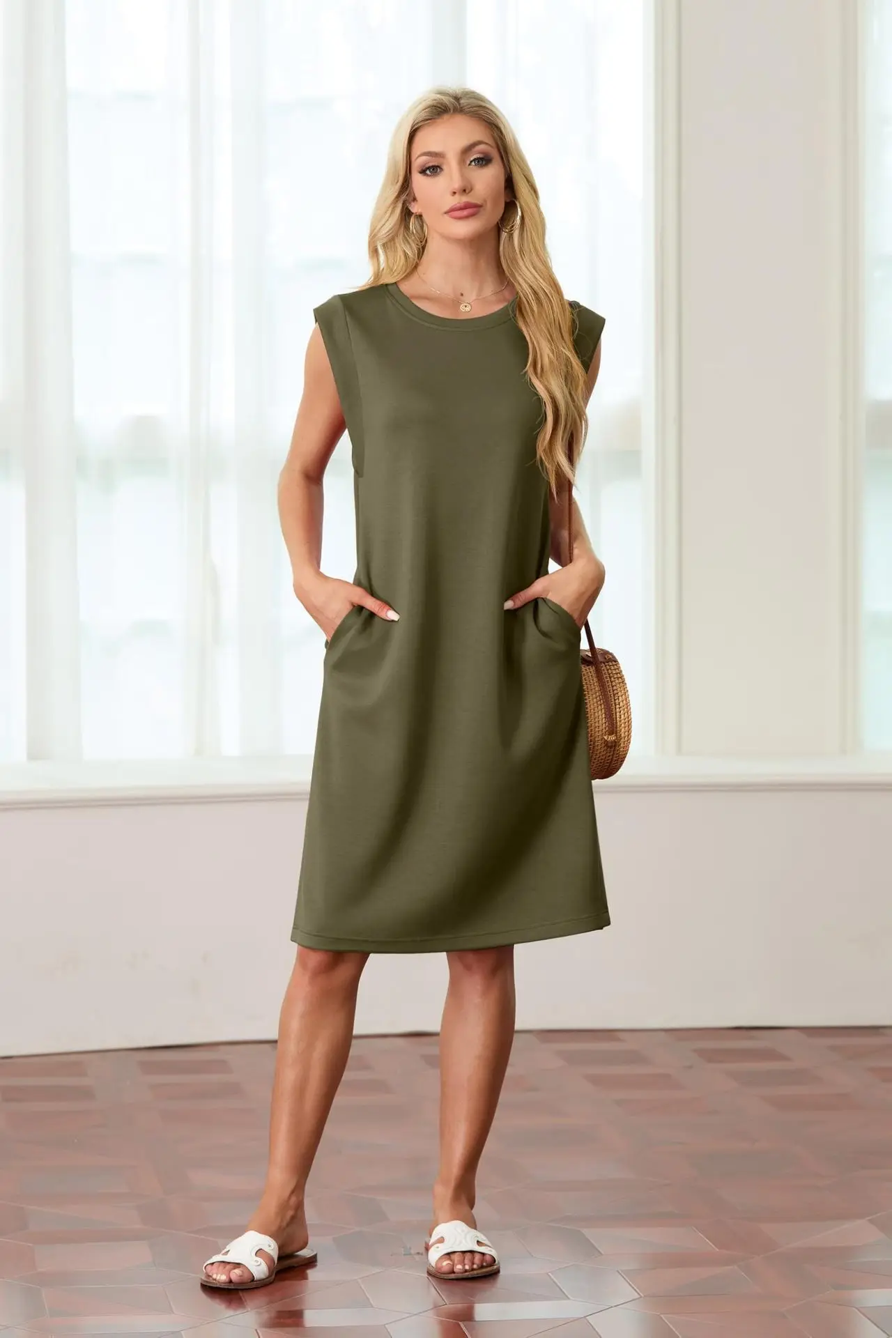 New Fashion And Multifunctional Temperament Round Neck Neck Sleeves Solid Color Summer Dress