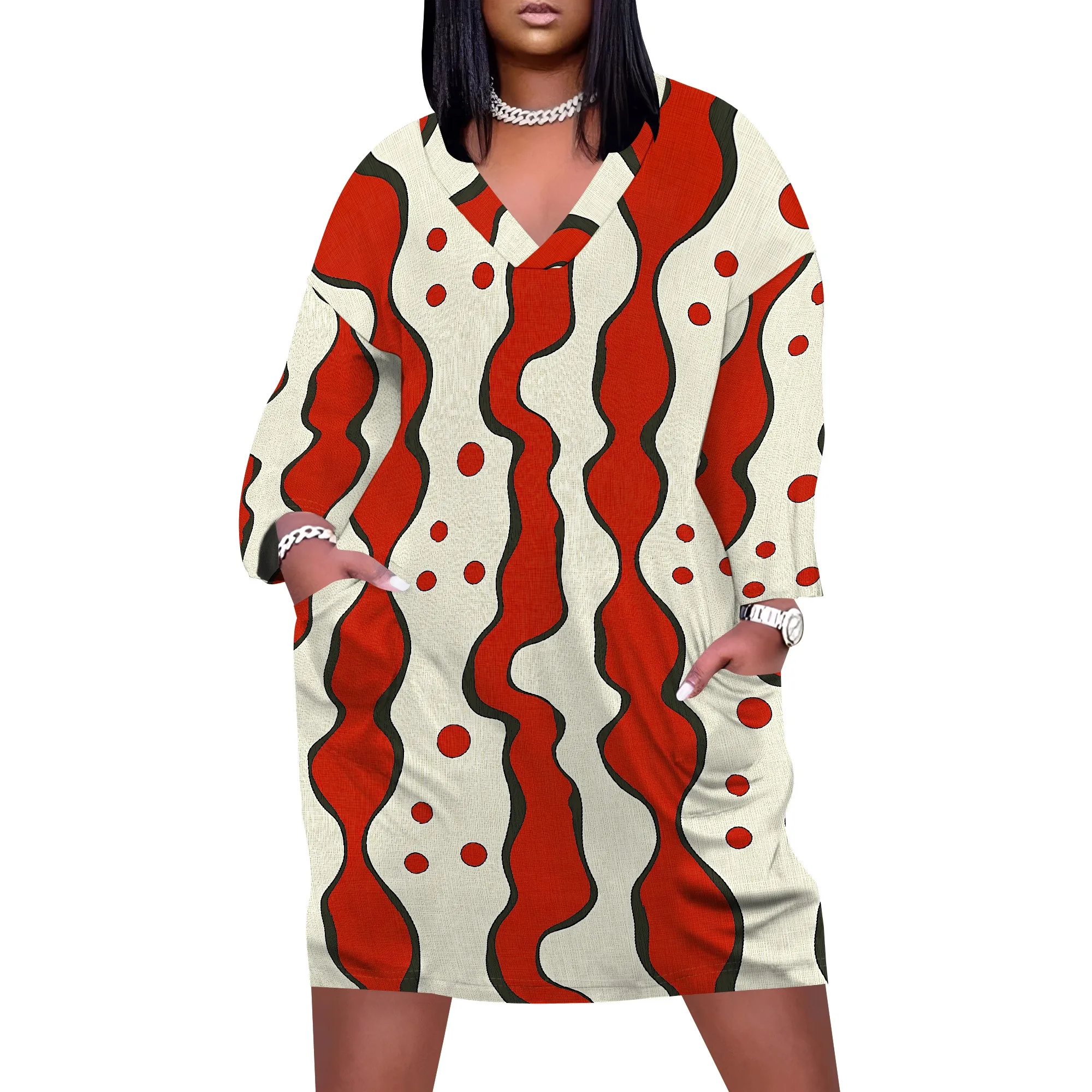 Plus Size Women's Abstract Print Dress XL-6XL, V-Neck Casual Dress for Fun and Bold Look
