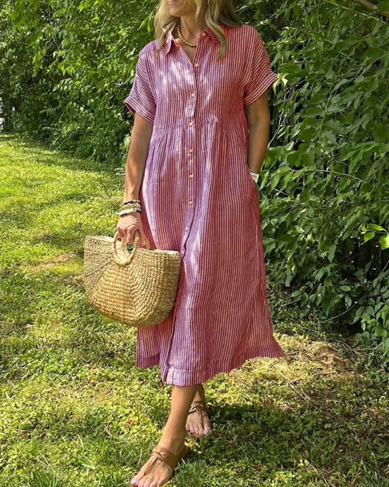 Plus size women's summer casual fashion striped loose short-sleeved shirt and plus size dress plus size women's clothing