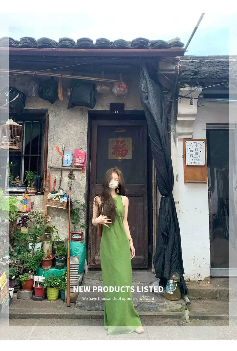 Ramie Linen Slip Dress 2025 Summer Women Sleeveless Maxi Dress Organic Minimalist Aesthetic Waist Defined Sustainable Resort Wear