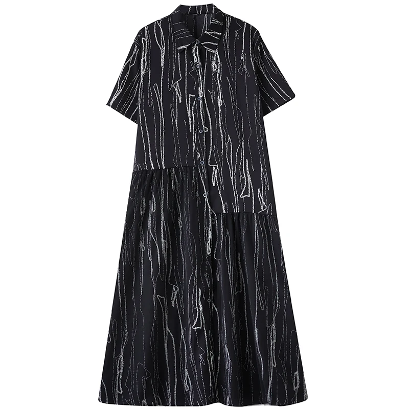 Stripe Print Mid Length Buttoned Midi Dress