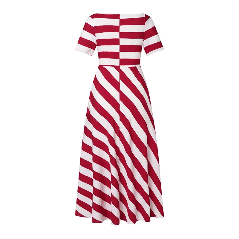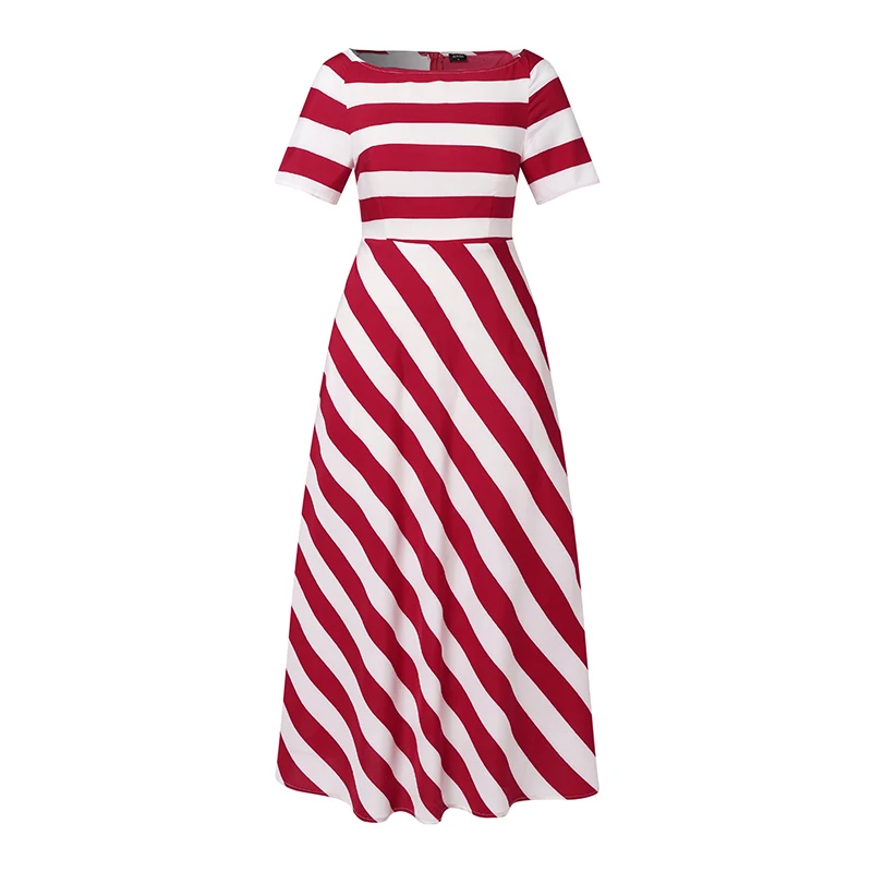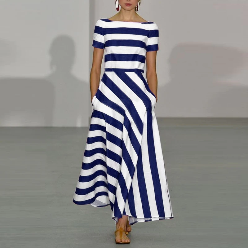 Stripe Maxi Dress VONDA Women Sexy Off Shoulder Printed Sundress 2024 Elegant Casual Loose Short Sleeve Robe Bohemian Vestidos