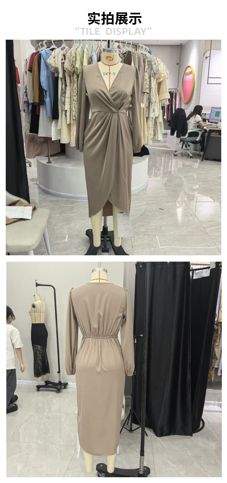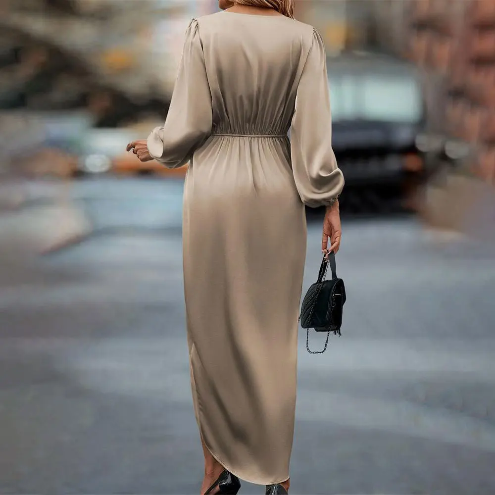 Women's 2025 new long dress; elegant round-neck silk satin long sleeves; midi dress for ladies; sexy dress; street fashionbe.