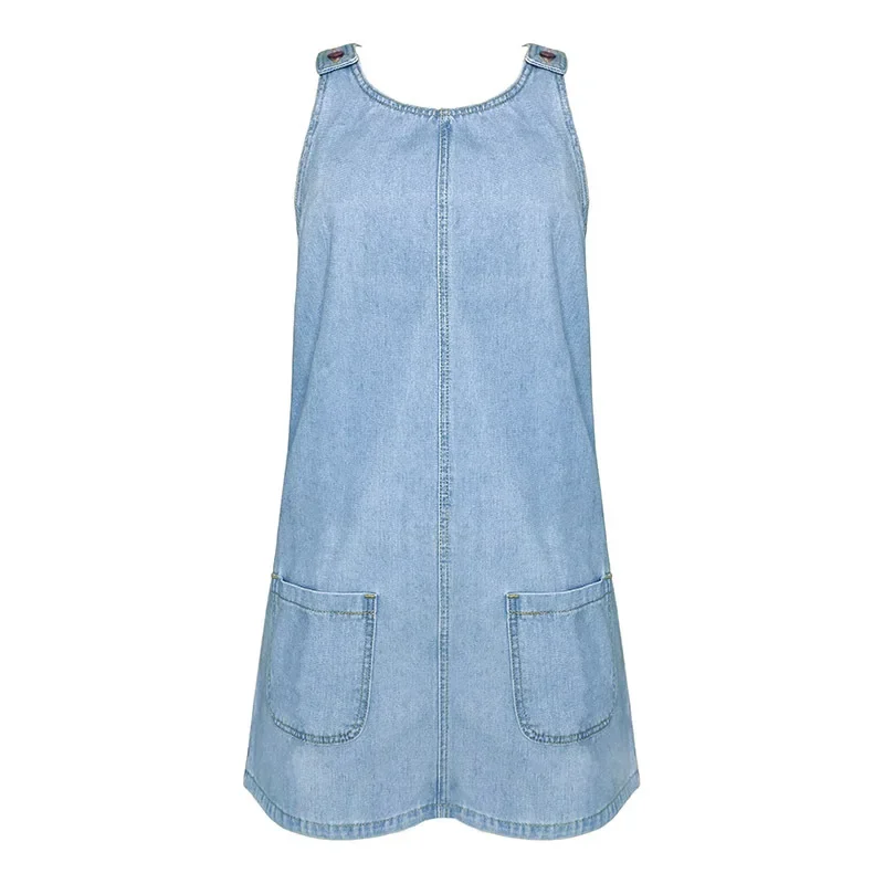 Women's Denim Dress Sexy Cool Strap Mini Dress Solid Color Sleeveless Pockets High Waist