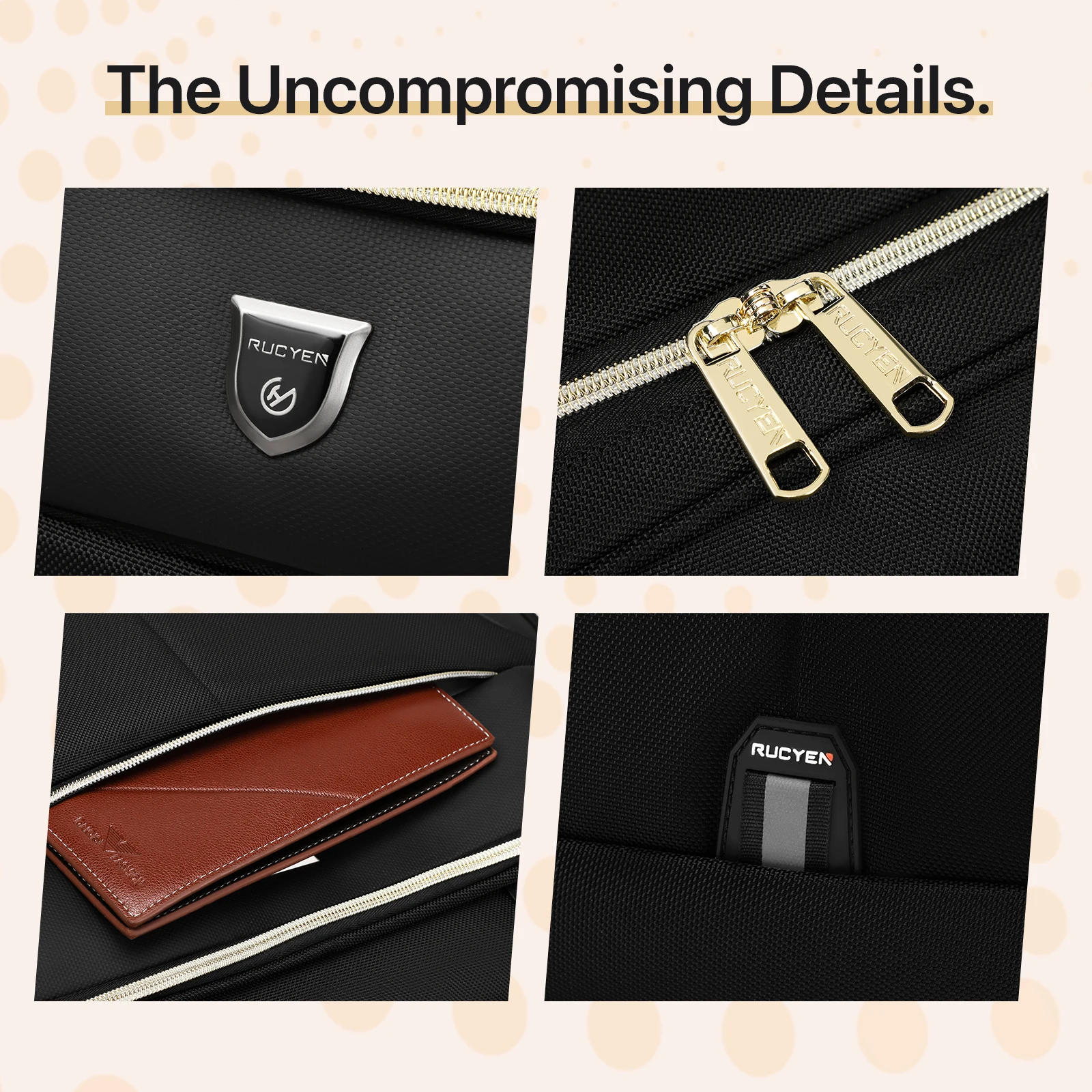 3.Three individually separated oversized spaces with luggage space to hold and secure your clothes, shoes and more, and a waterproof pocket for separate overnight toiletries. It can store 15.6-inch laptops and other electronic products, and has a thick bumper compartment to protect your electronic products. Can store your books, documents, certificates.