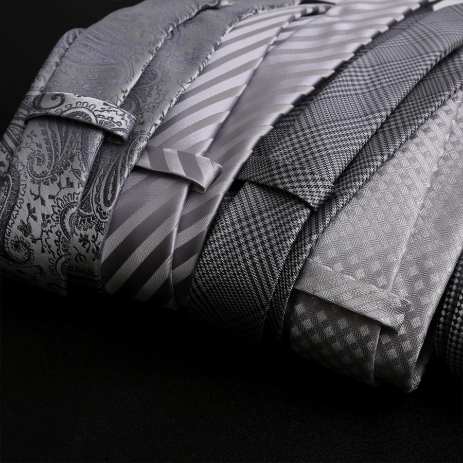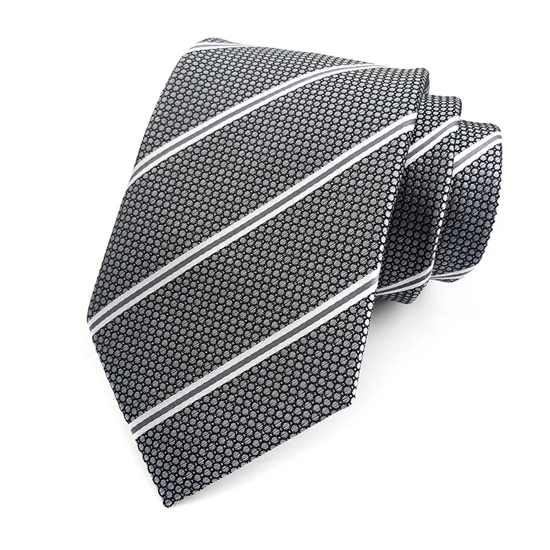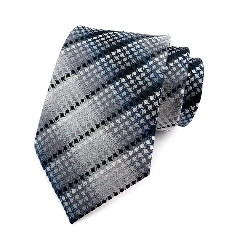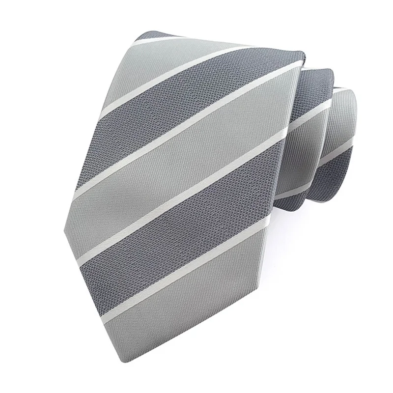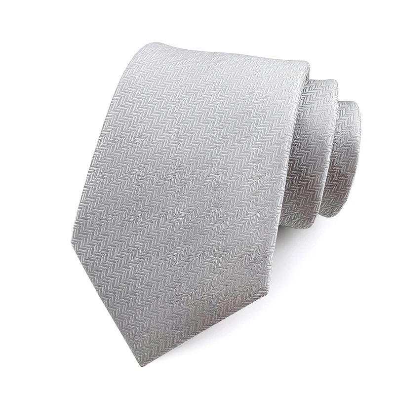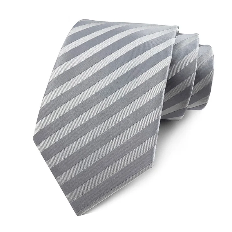 Fashion 8CM Mens Necktie Silver Light Grey Color Stripes Floral Plaid Ties For Man Groom Neck Tie For Business Wedding Party