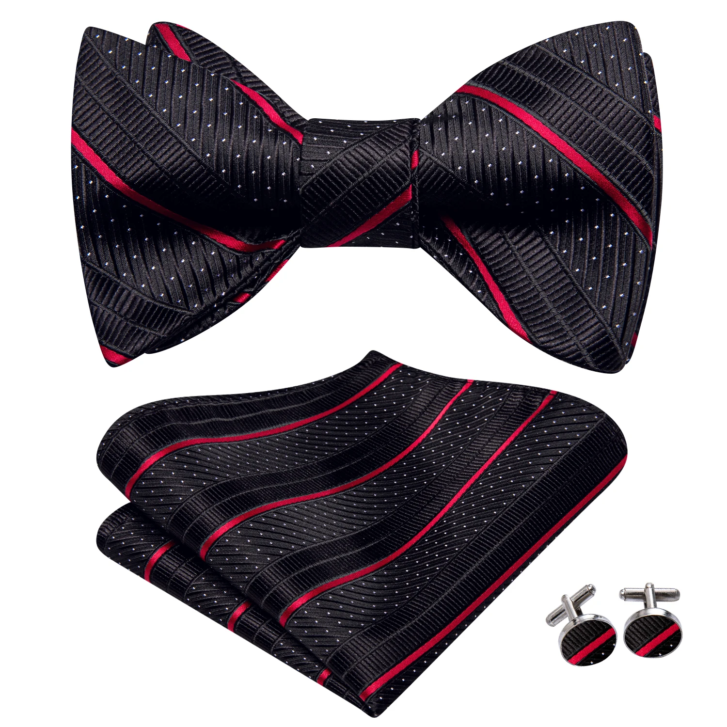 Hi-Tie Red Black Purple Paisley Mens Bow Tie Hanky Cufflinks Set Self-tied Butterfly Knot Bowtie for Male Wedding Business