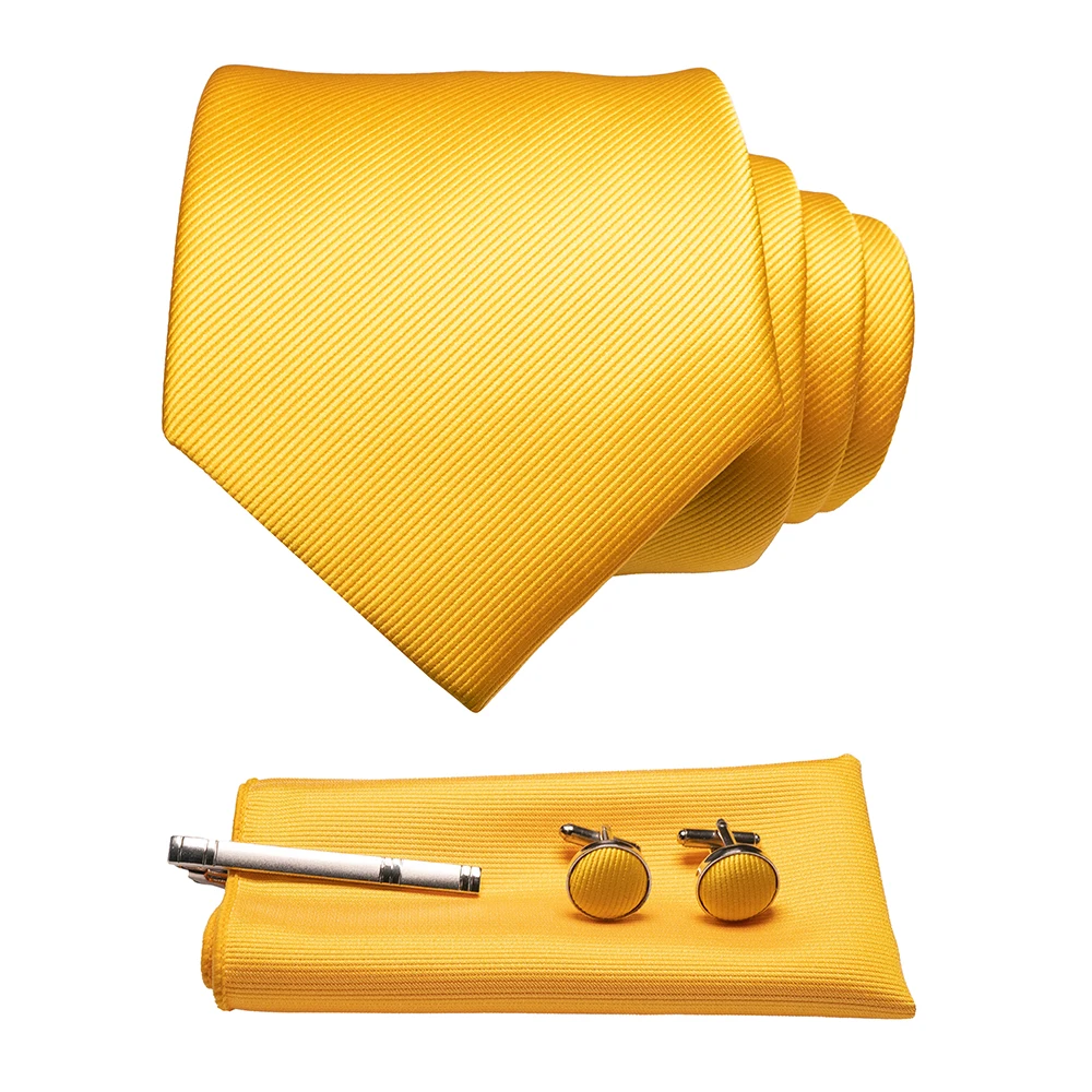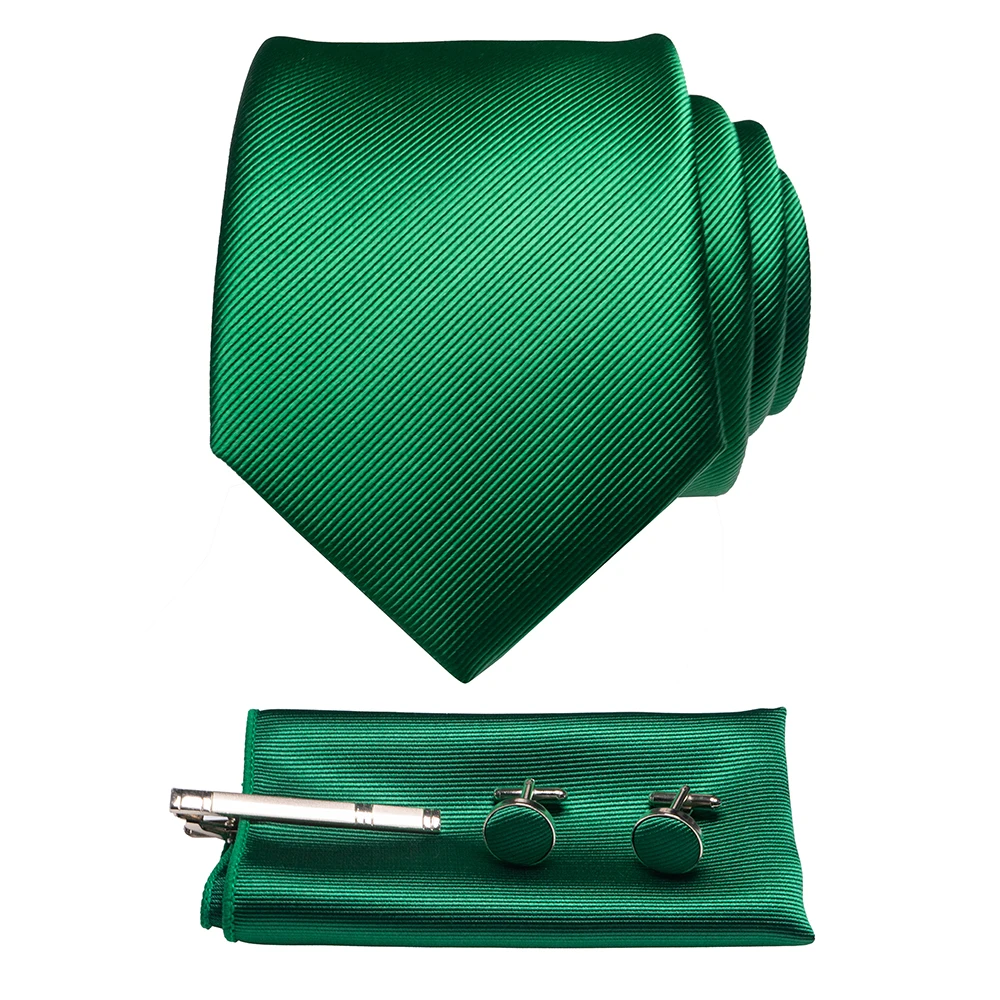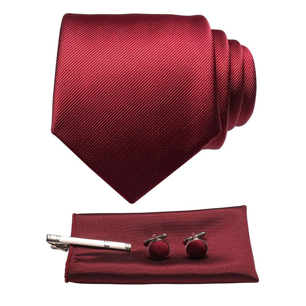 JEMYGINS Original New Solid Silk Tie Male Formal Plain Red Necktie Pocket Square Hanky Cufflinks Set For Men Party Wedding